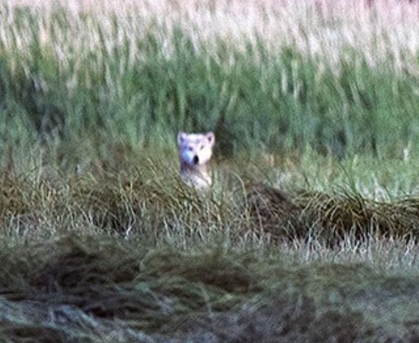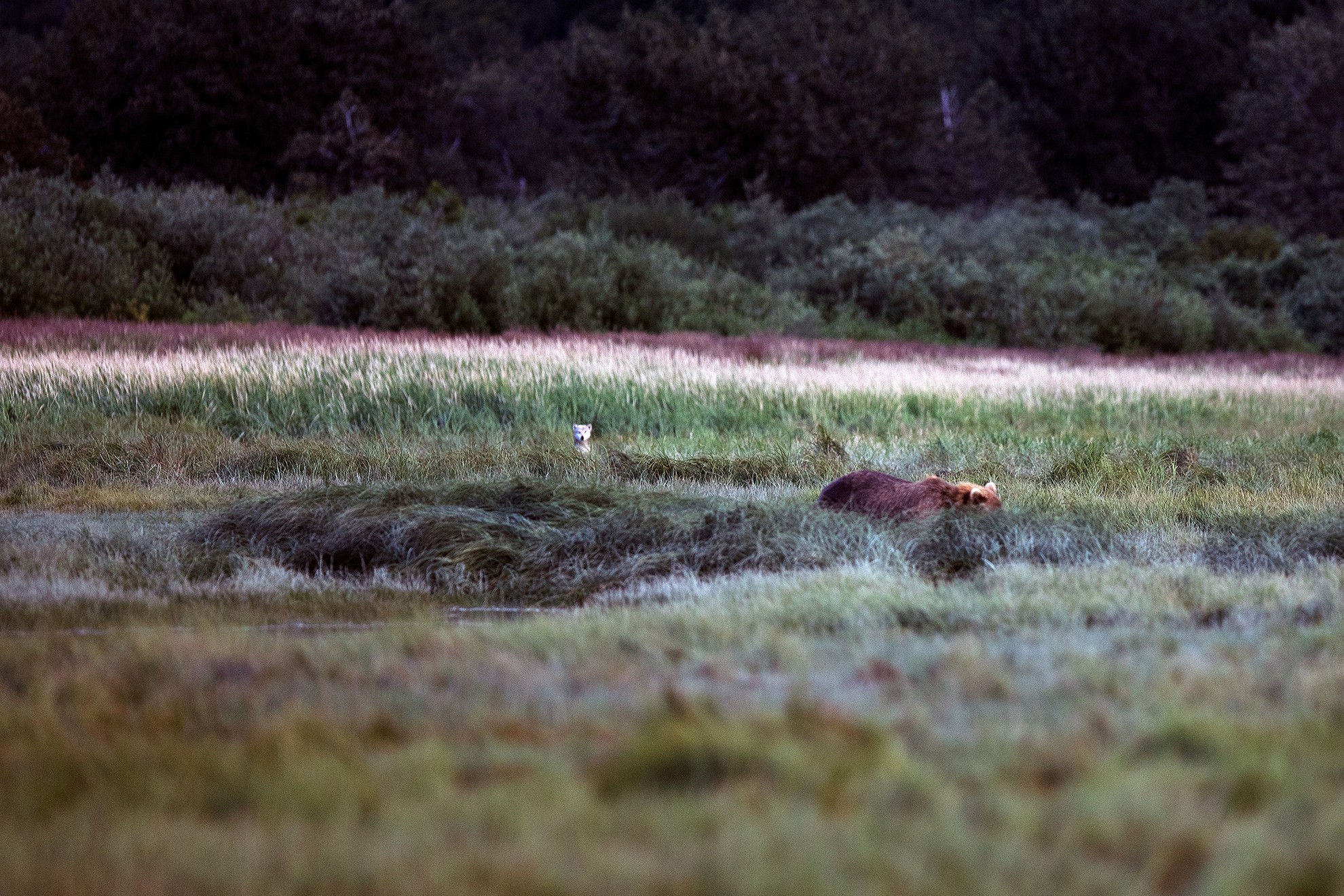 This is a cool shot - if you look you can see a wolf watching to see what the bear is doing. Zoom in. The wolf is just left of centre.