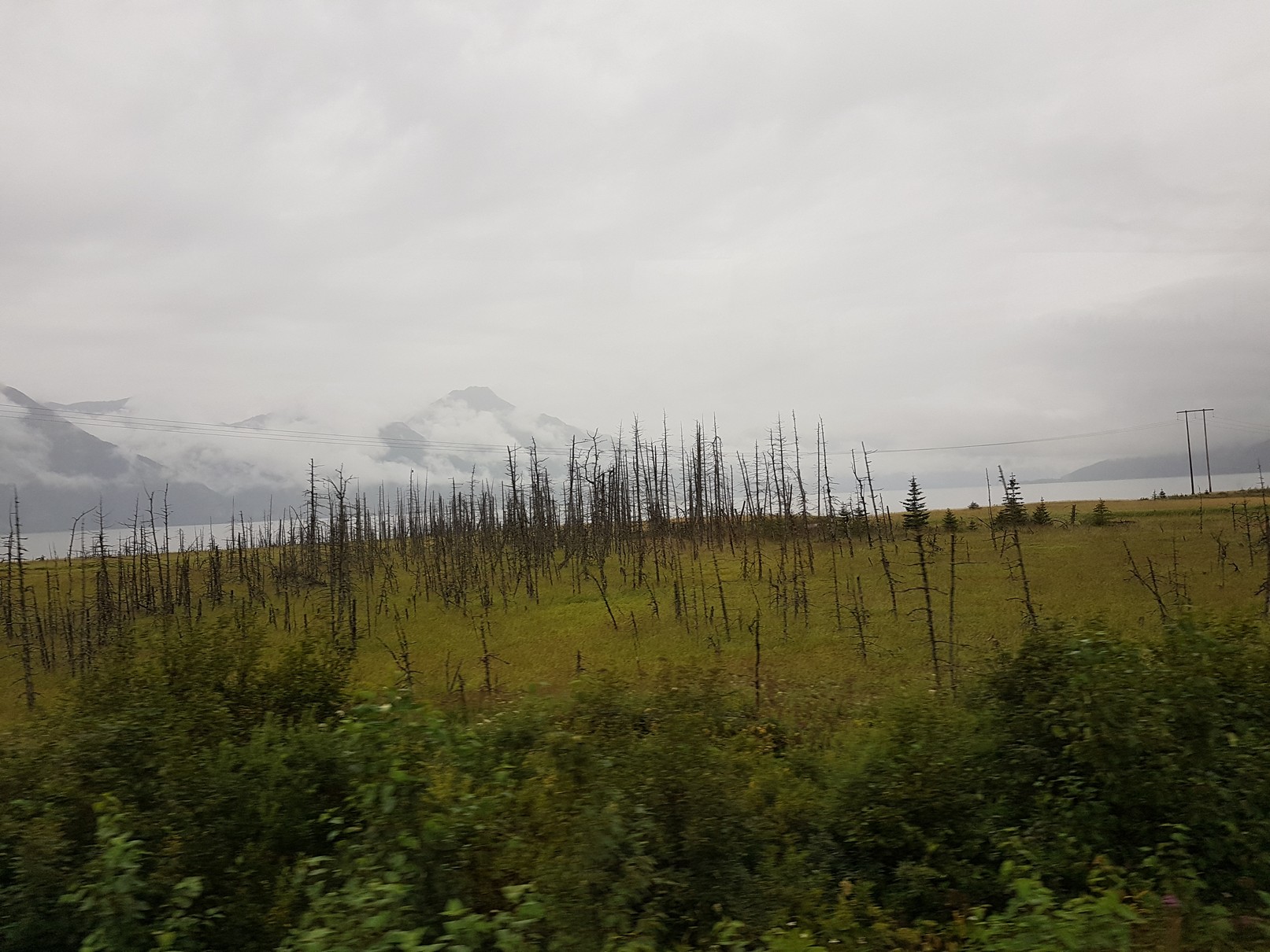 There are quite a few of them along the highway. In 1964 the second largest earthquake ever recorded occurred in Alaska very close to where we are now. The land dropped about 10 meters (or 10 feet...can't remember) and saltwater invaded the soil and the trees died. Never to recover.