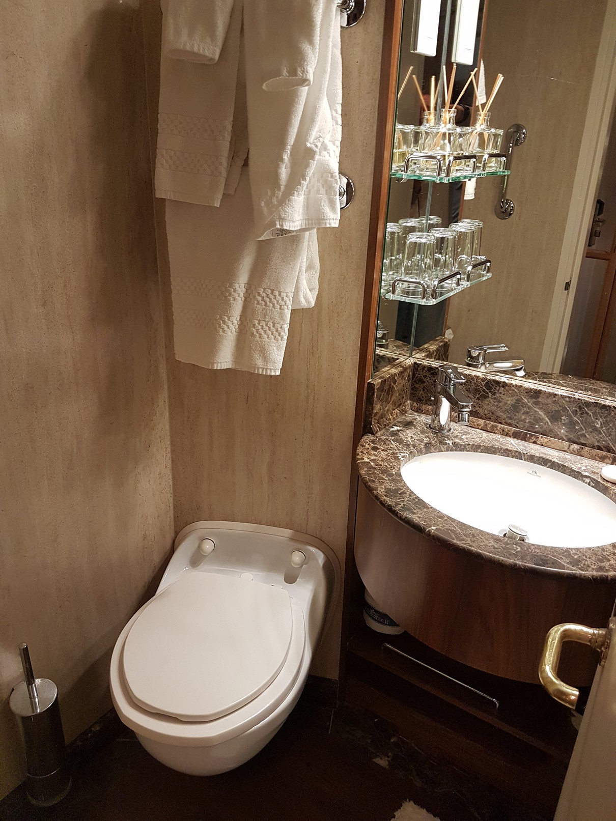 The toilet only broke down three times during the trip and it was always fixed by the time we got back to the room. The plumbers on board have a shitty job I think.