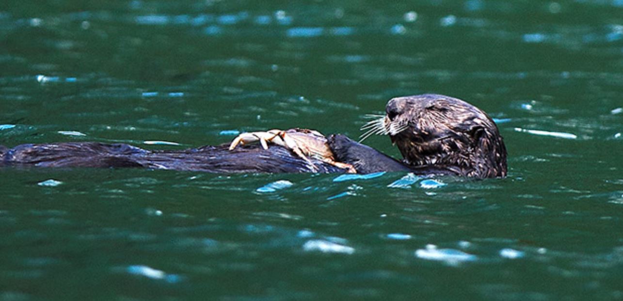 Another Sea Otter. He's got a crab that he's caught sitting on its chest.