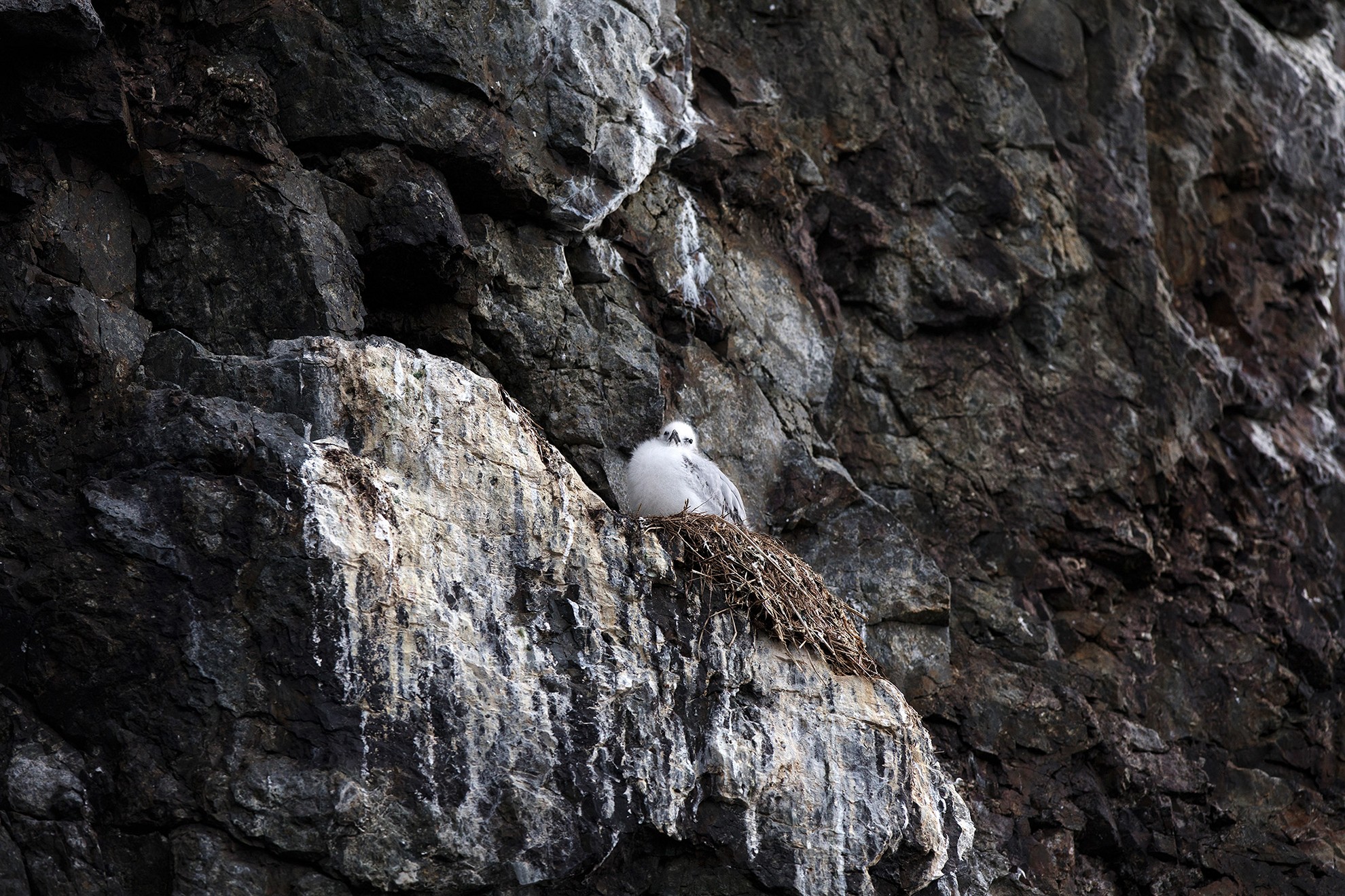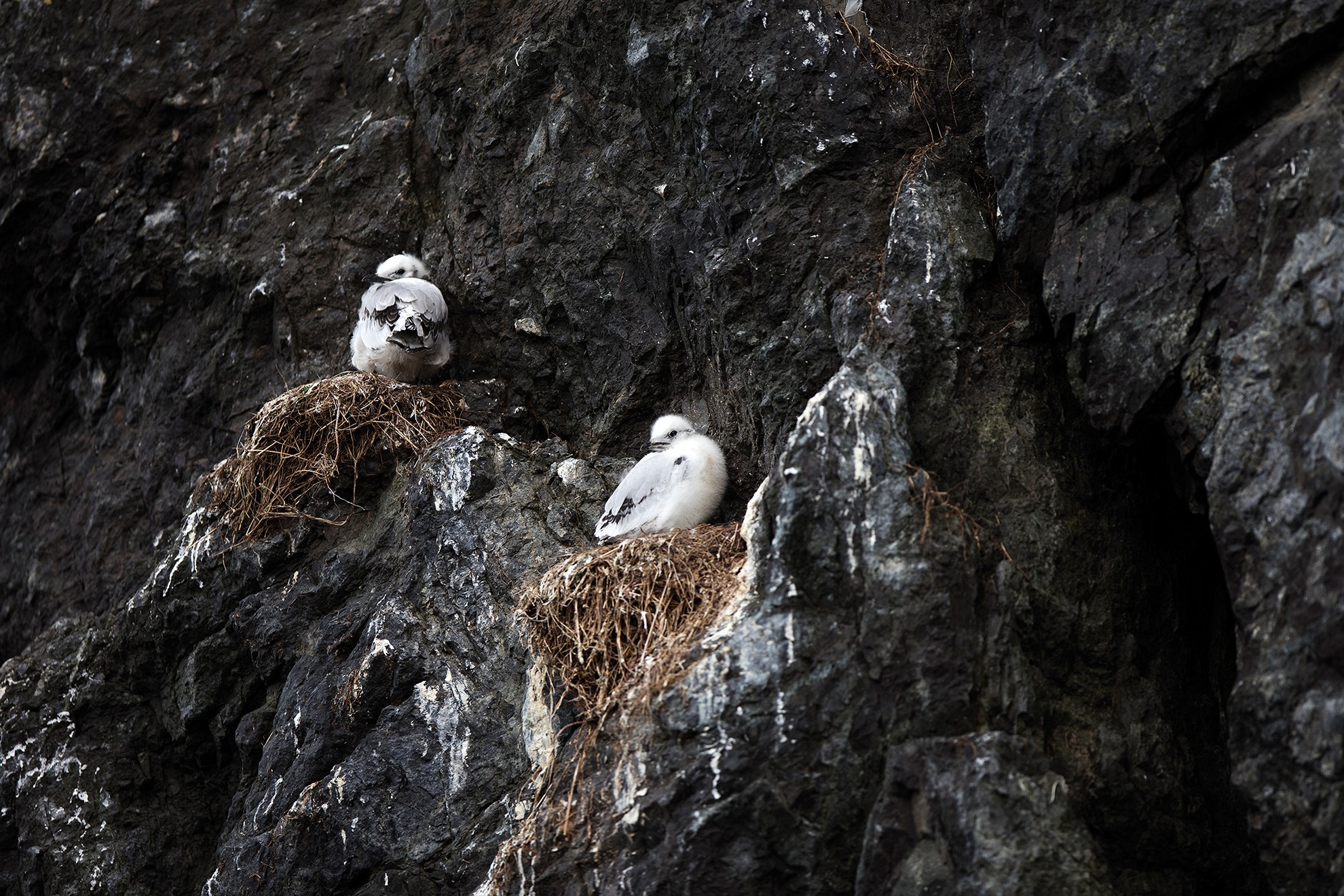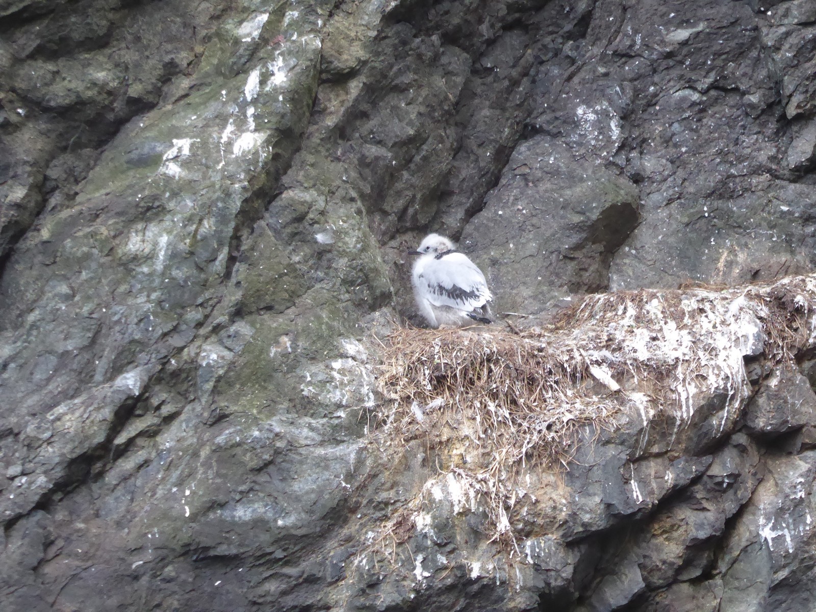At the top of the photo you can see a baby gull in the nest with its parent.