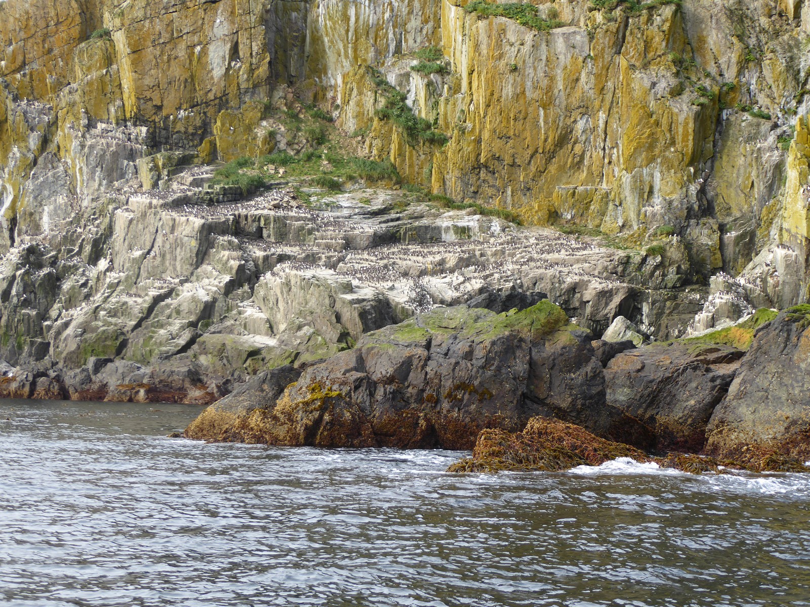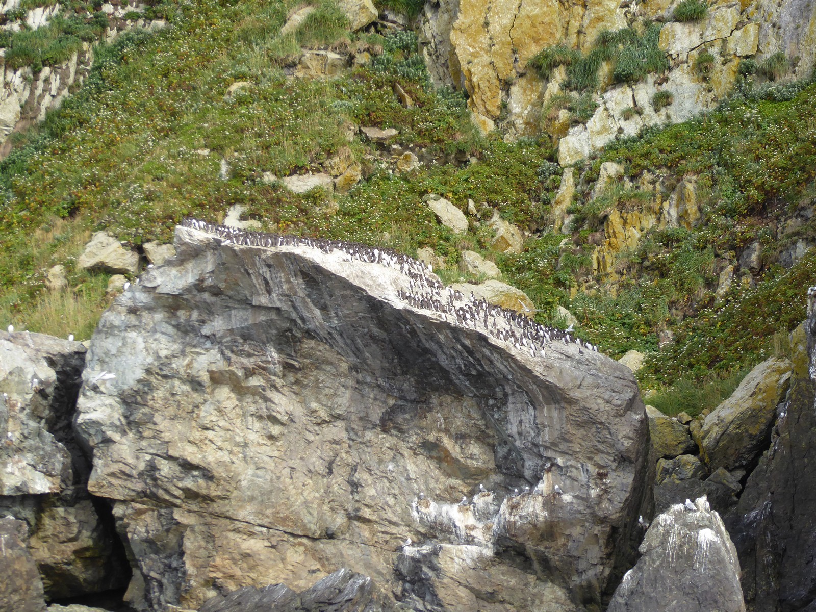 Two adventures today. First a zodiac trip to look at birds. There are a lot of people on this trip that really love looking at birds. I'm ok with it - I'd rather look at boobs though. HAHA! I got nothing against birds but they're really stupid I think, they live on a wee small ledges or out in the open when there is good grass cover nearby. See pics following. I guess their brains are pretty small (the expression "bird brain" comes from that) so how do they know any better.