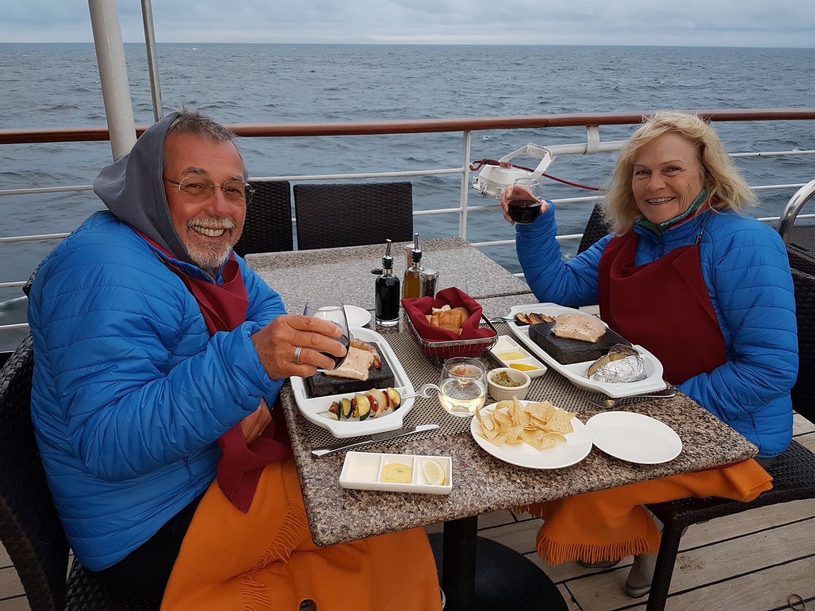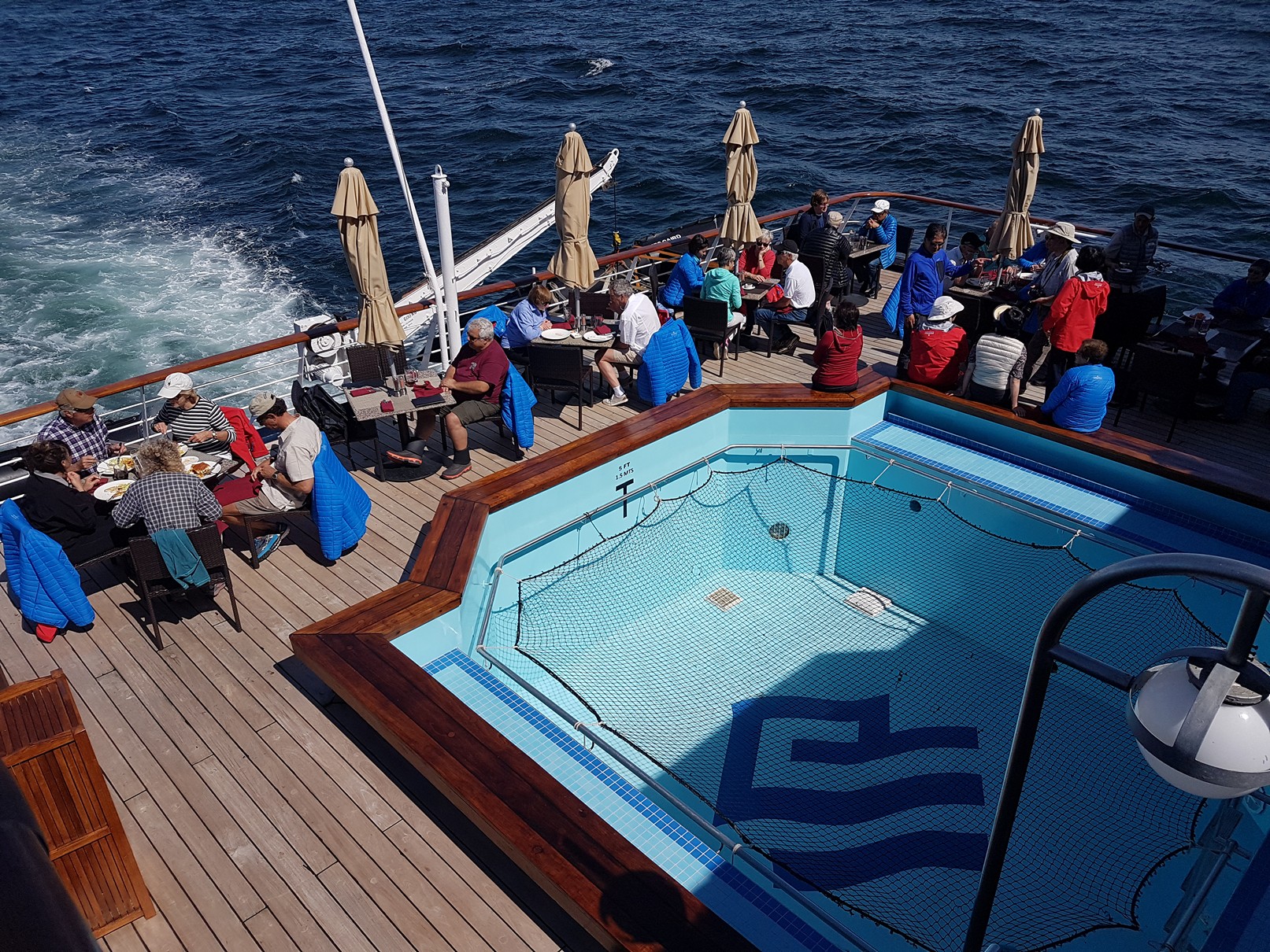 Back on the ship just about everyone has lunch outside. It's a beautiful warm afternoon.