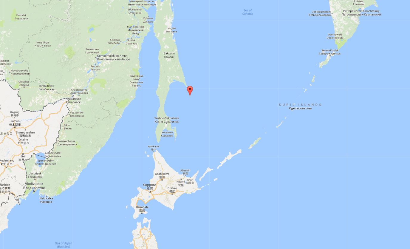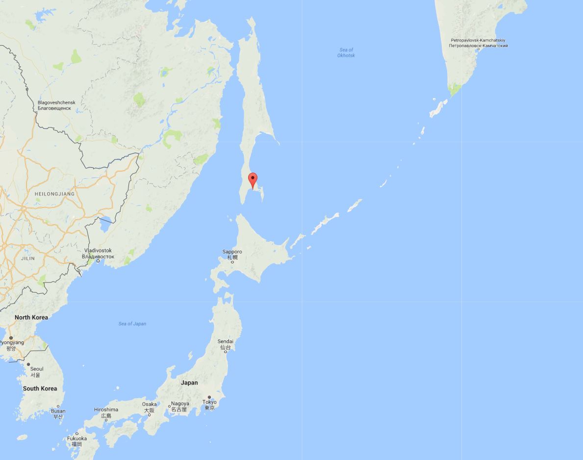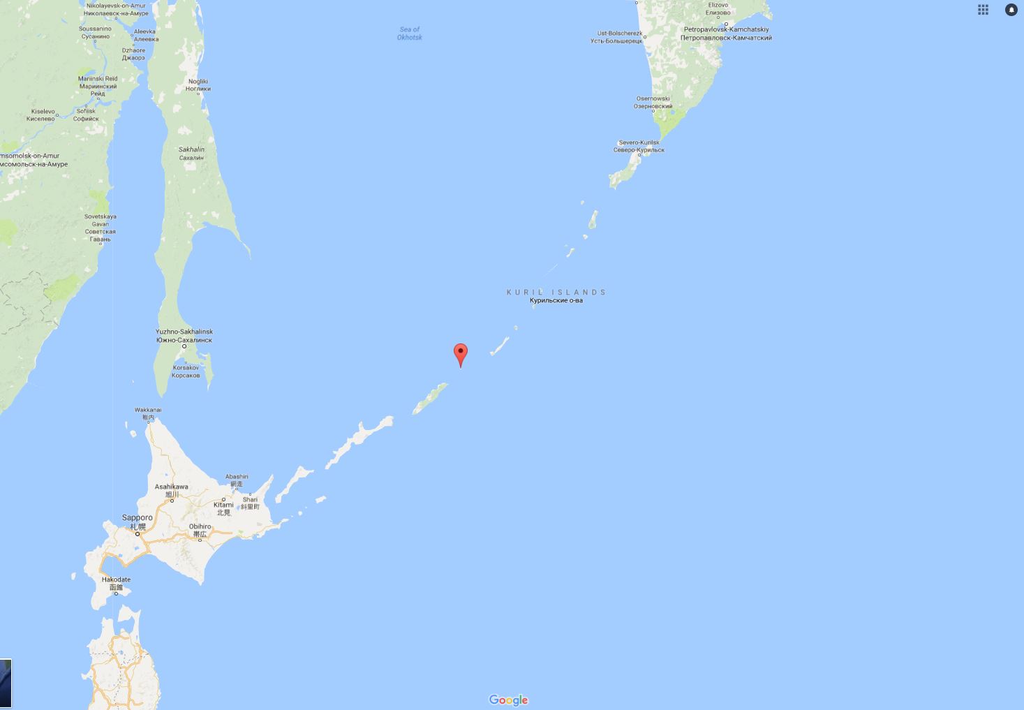 It's about half way between the Kamchatka Peninsula and northern Japan.