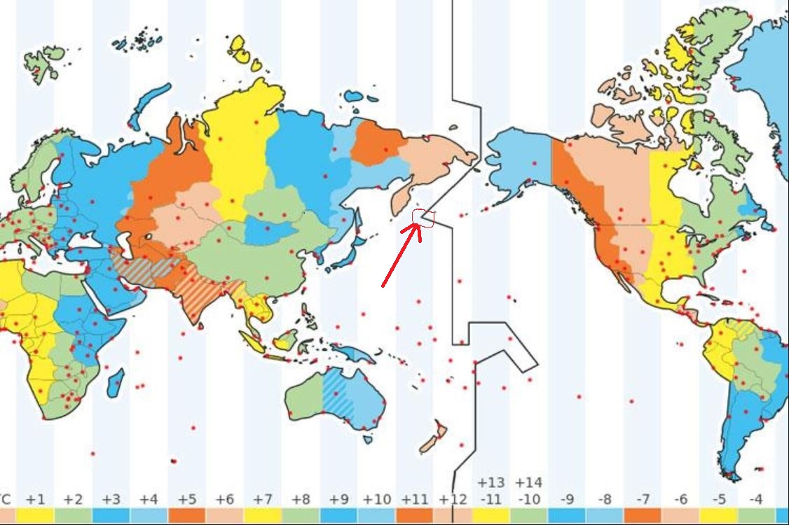 Not really - we had only crossed the international dateline. I don't know exactly where we crossed it - somewhere inside the red circle as shown below. We're getting close to Russia at this point.