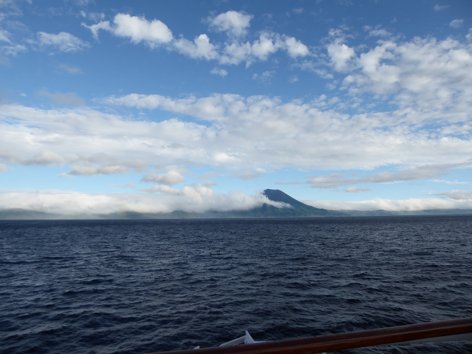 In the afternoon we pass an island with a volcano. Can't remember the name.