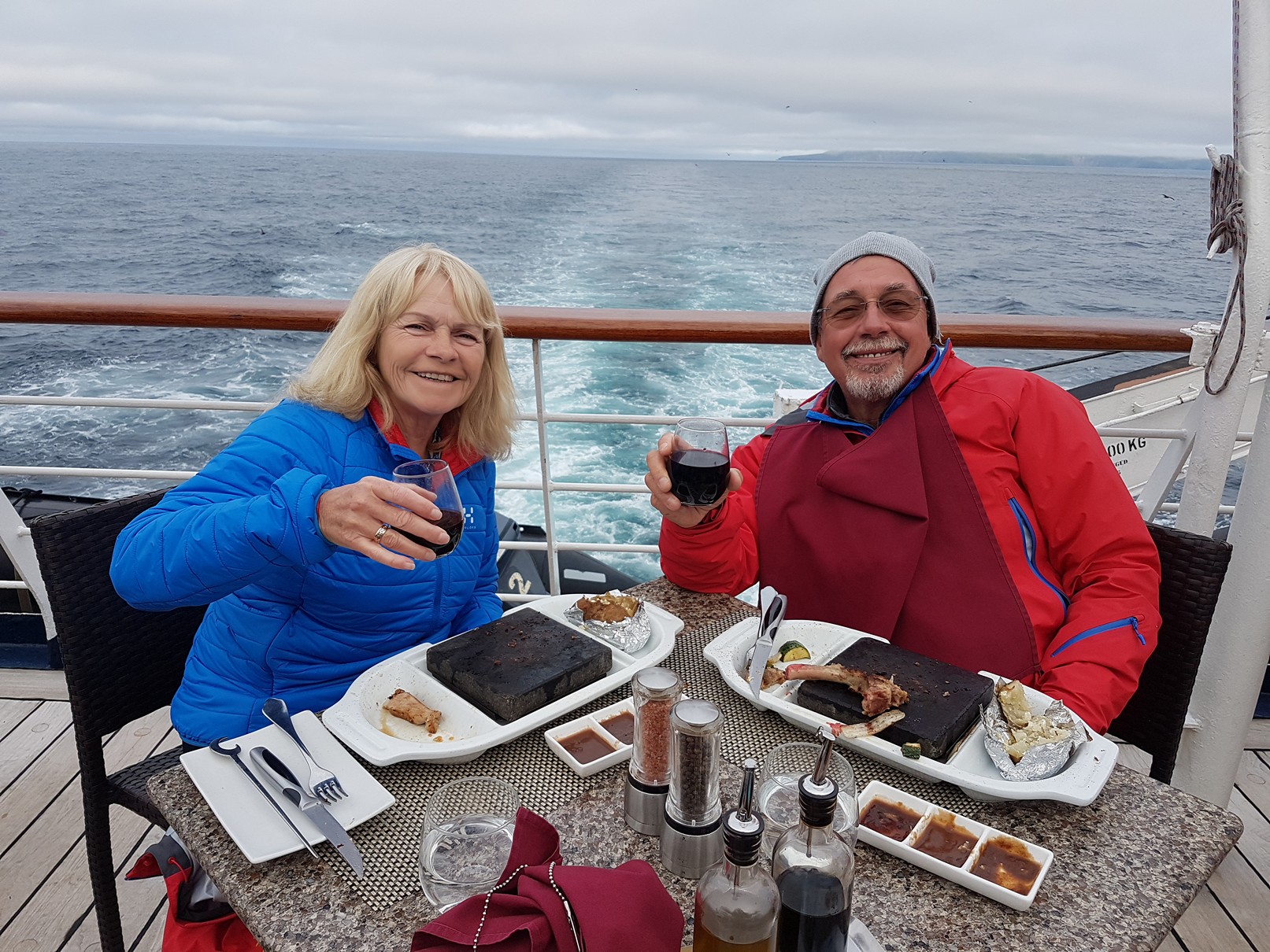And for dinner that night we do the hot rocks thing again. It looks like we're both having fish tonight