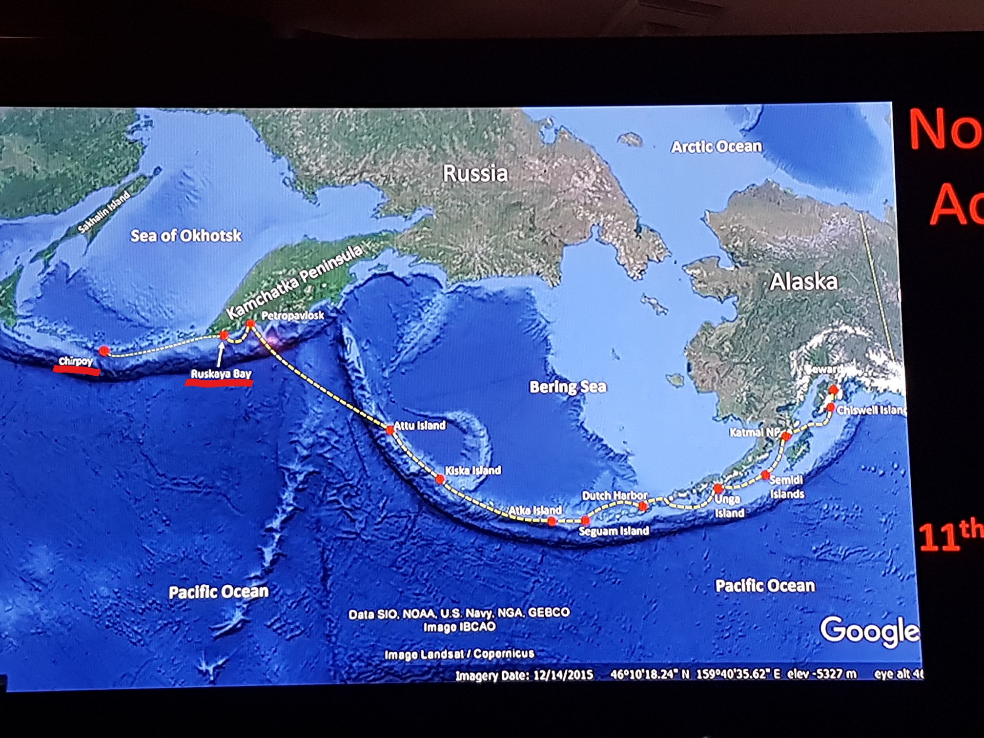 Our location is about 300 km north of the Japanese island of Hokkaido where we will end our trip day in two days.