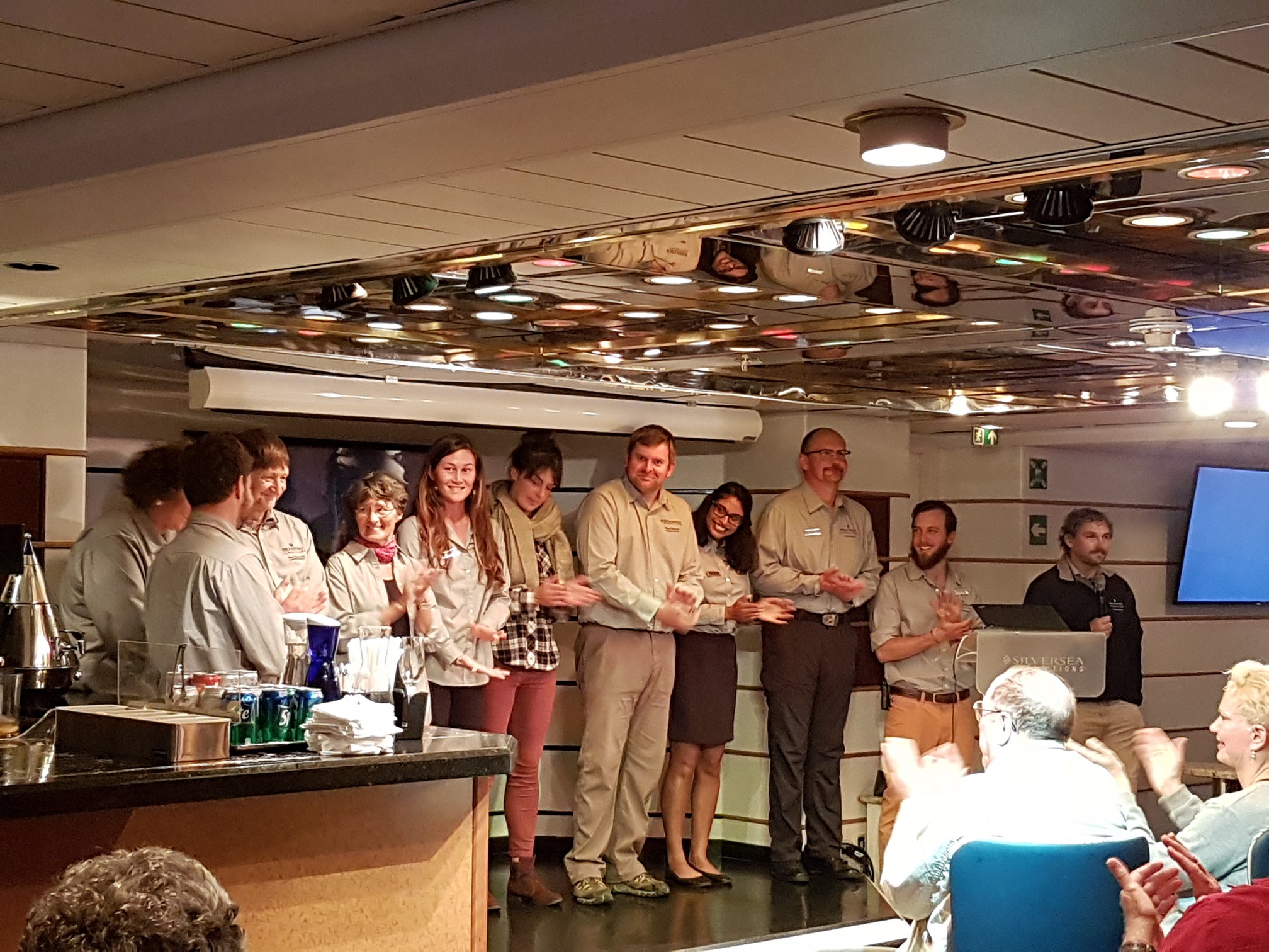 The guys in black below are all part of the expedition team - the people that will drive the zodiac boats and explain to us what we're seeing or explain to us why we haven't seen anything.