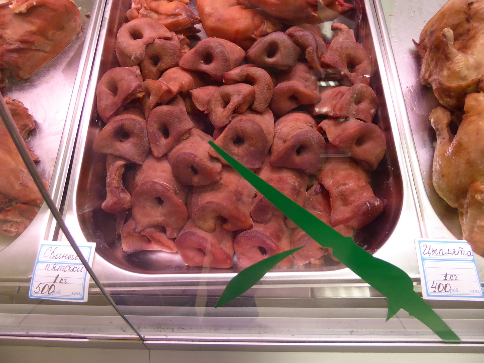 One of the stops on the bus trip around town was at a market. Like we'd never seen a market before. Those are pigs noses below. Certainly never seen that at a market before!