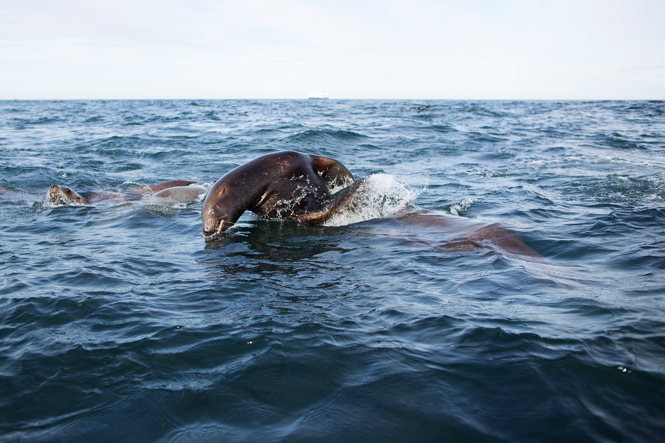 The seals so curious and inquisitive that some of them swim all the way from the island to inspect our ship.