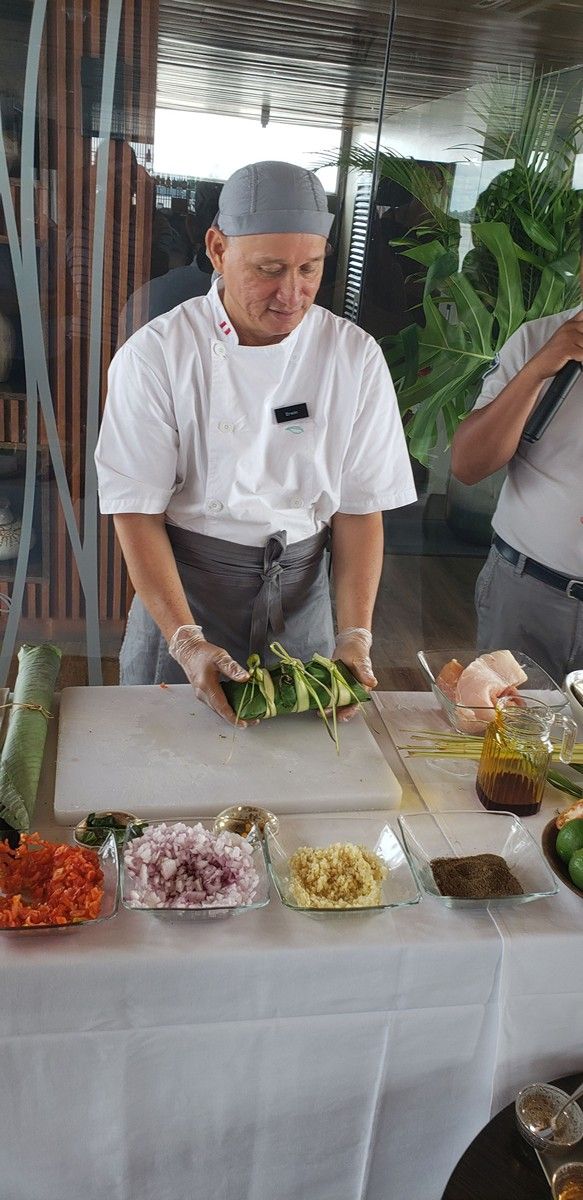 Something called Pachamanca. A fish dish containing all the ingredients shown below. A real pachamanca is cooled in earth under some hot stones.