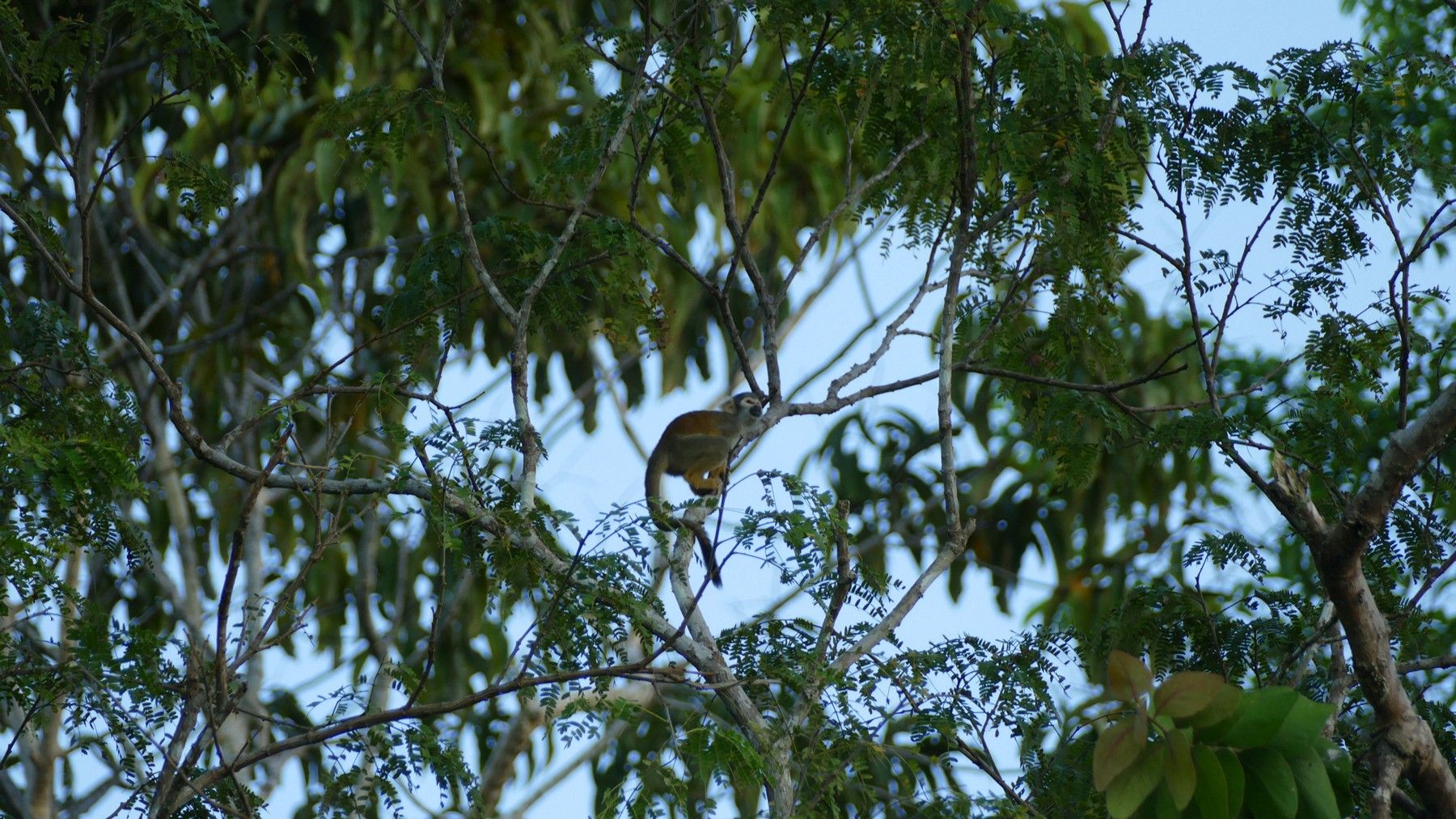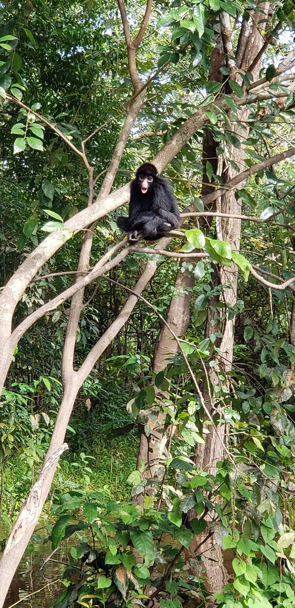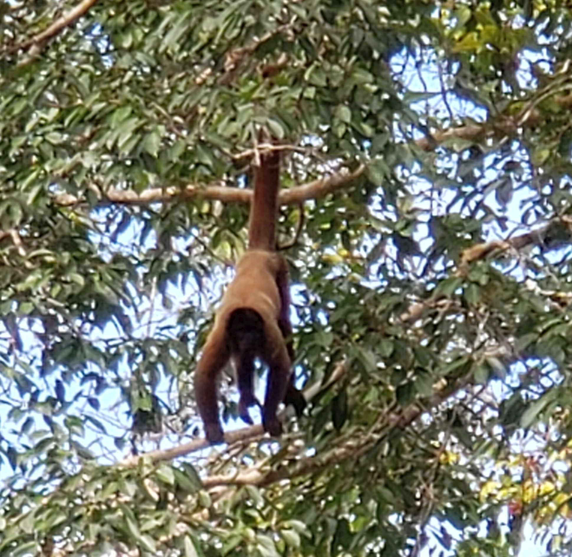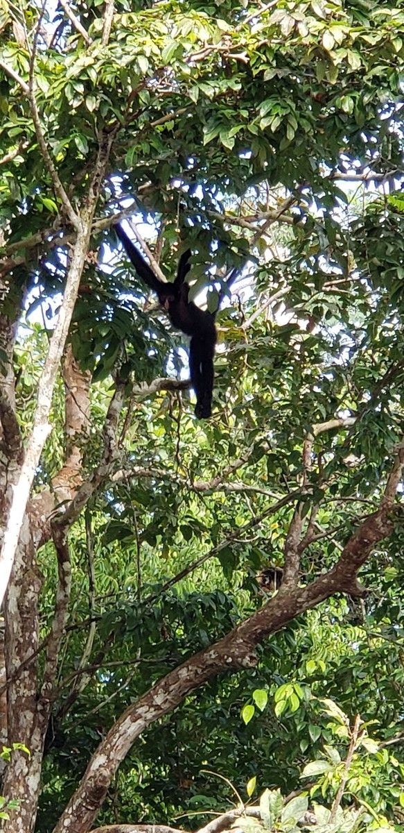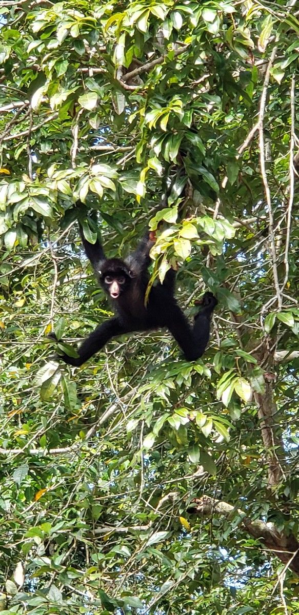 In the middle of the pic below is a small black blob. A spider monkey.