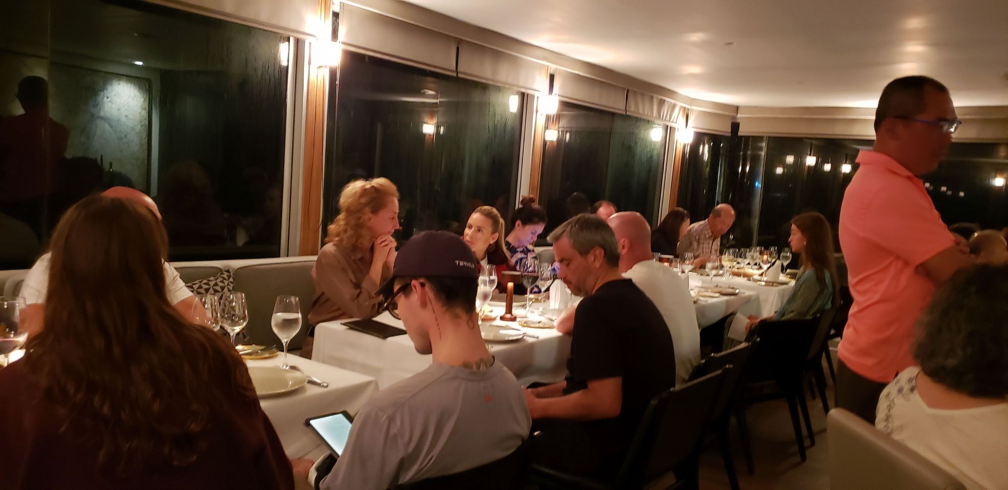 In the restaurant we sat at separate tables but close enough that we could talk.
