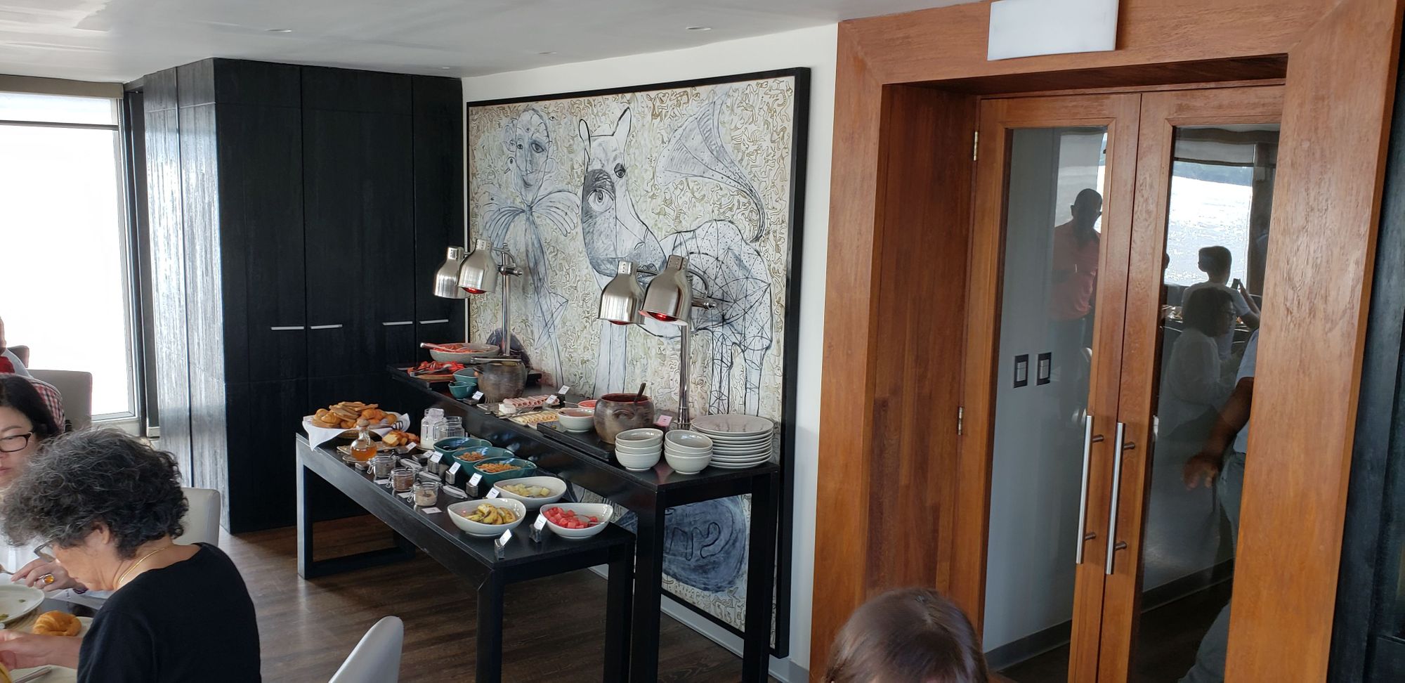 Another shot of part of the restaurant. This was the breakfast buffet layout. A good variety of fruit, pastries, cereals, meat, cheese, etc. Really quite good considering the size of ship. You could also order a la carte which I did.