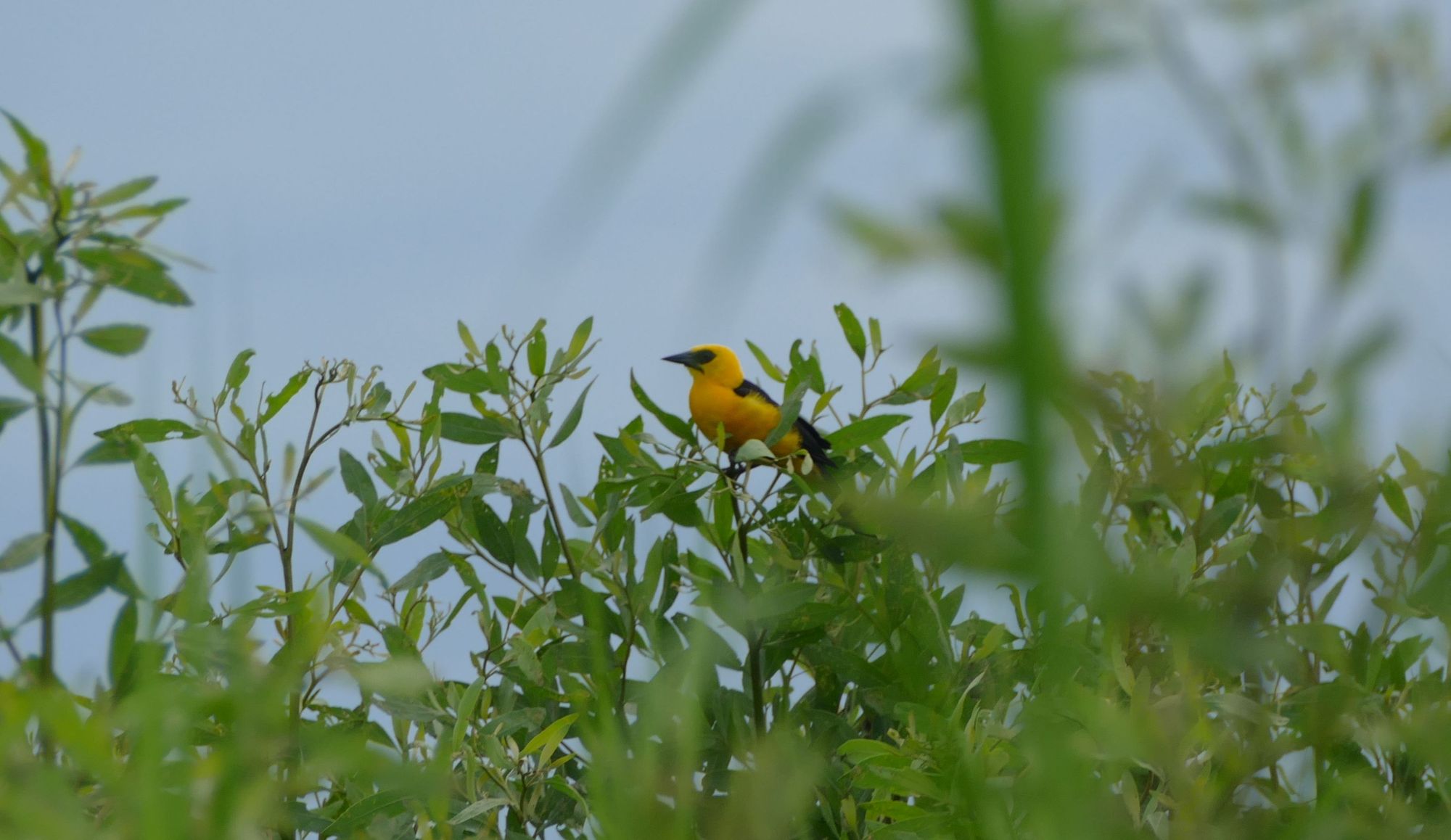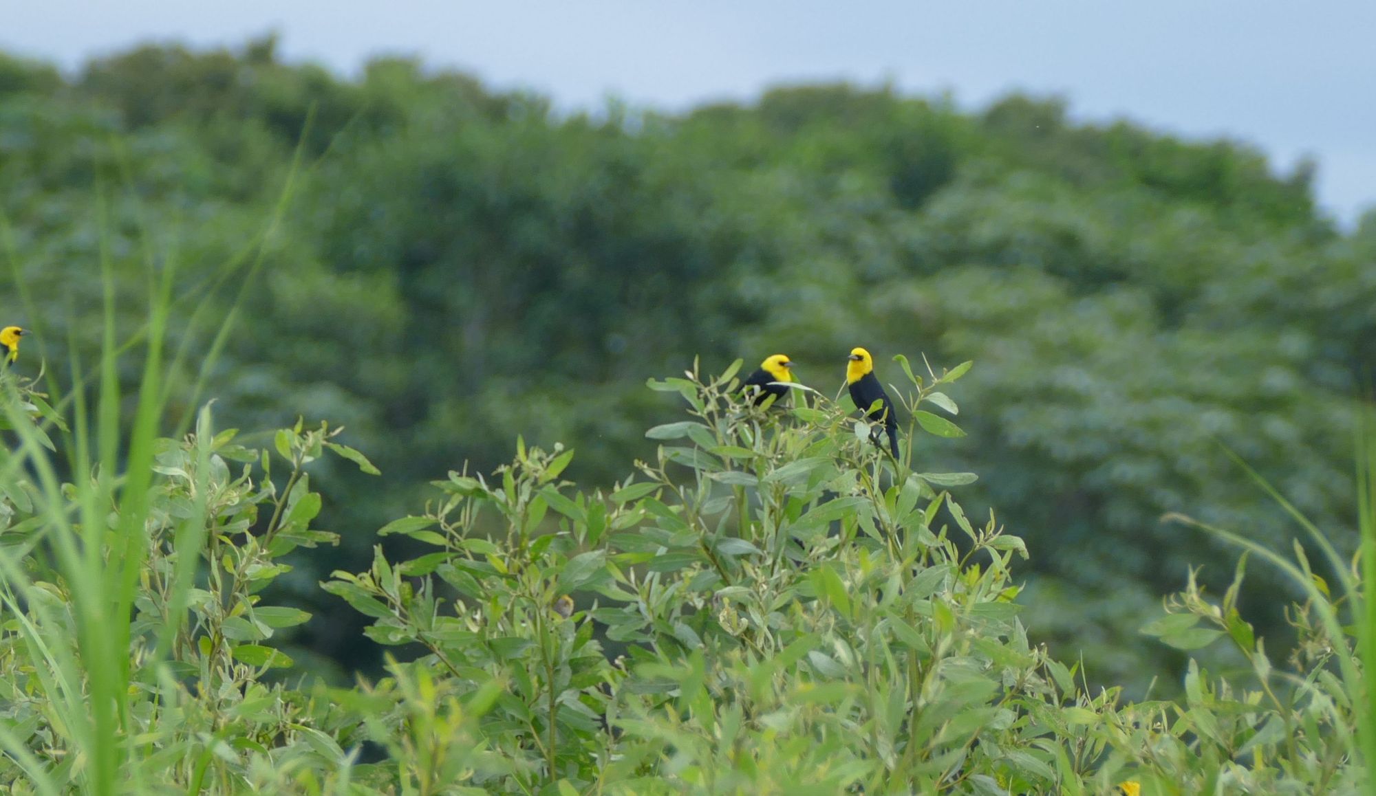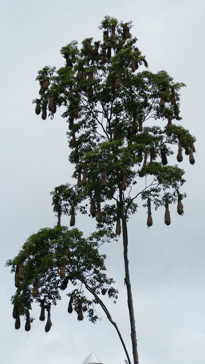 Each male bird has a small harem - each nest has a lady bird in it and the small baby birds. I guess he stays busy feeding them all.