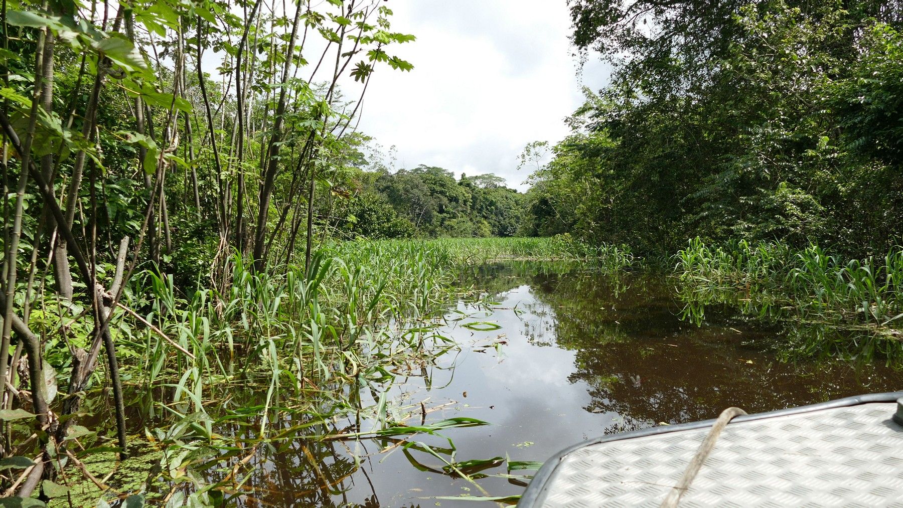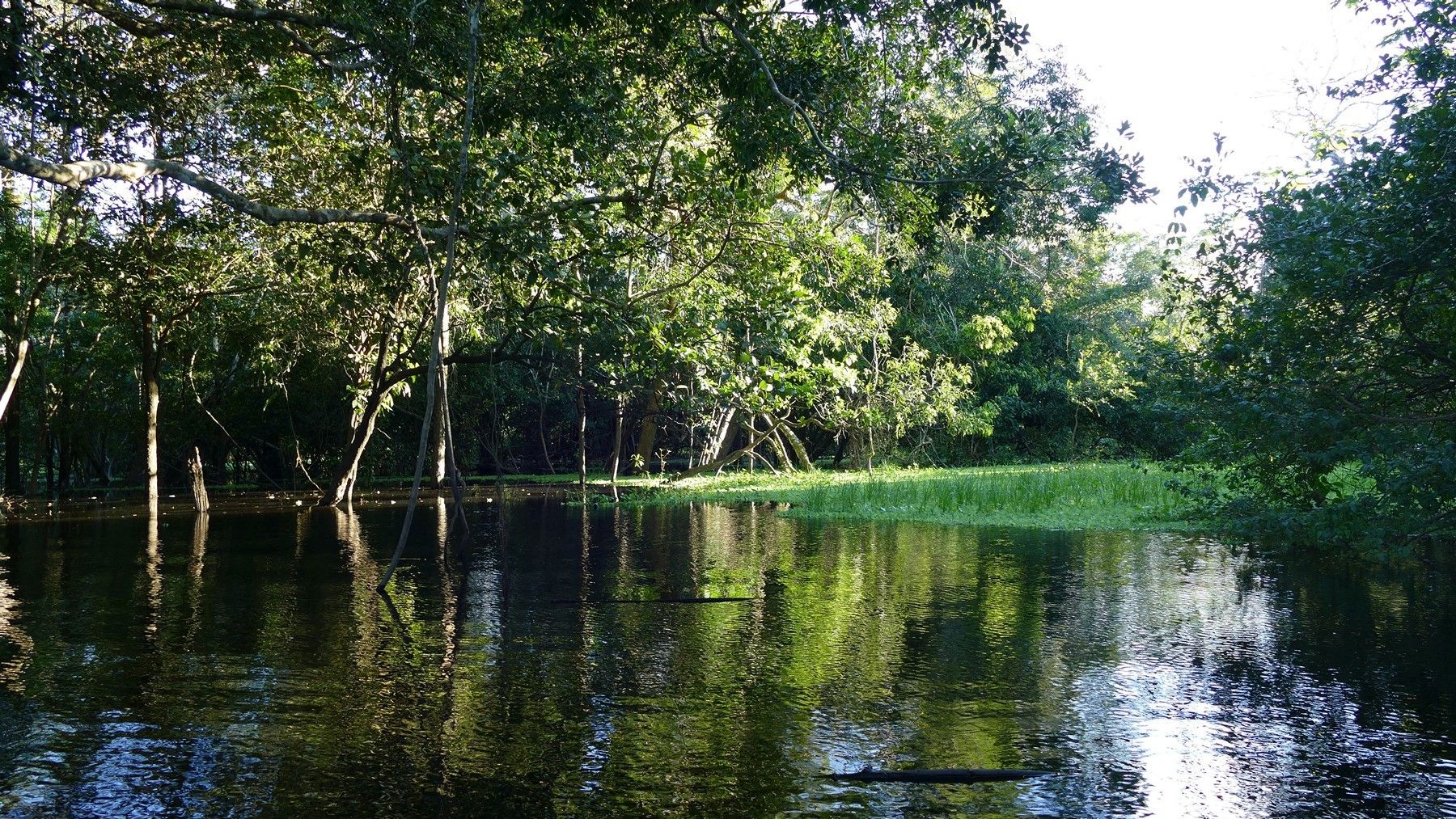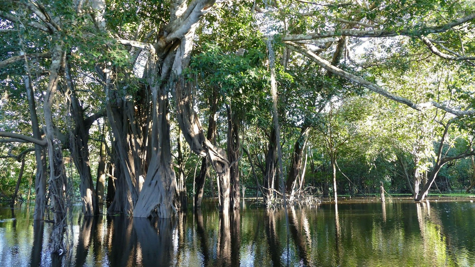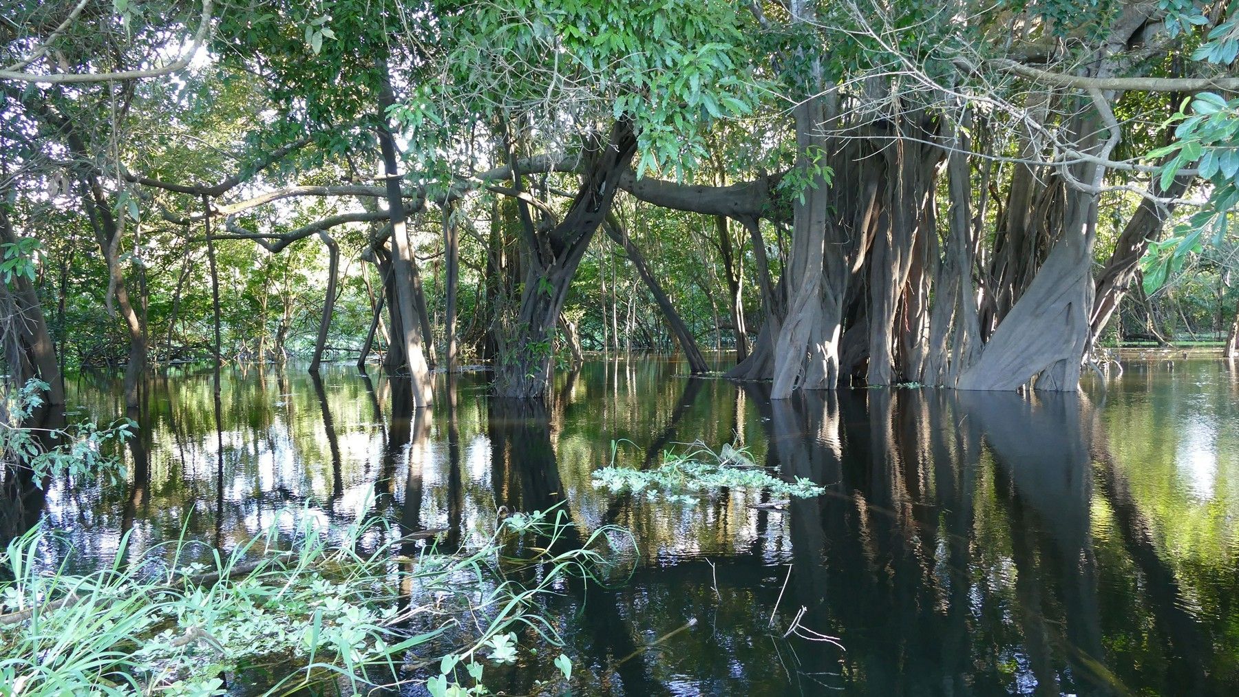 We visited the area at the start of the rainy season. These tributaries drain a HUGE area of land and when the rain comes the water depth increases dramatically. Look at the trees in the middle of the pic below. Look about half way up. The bottom half of the tree trunks are darker that the top half. The dark part of the trunk is the part that is under water during the wettest period of the rainy rainy season. Probably about 6 - 10 feet higher than at present.