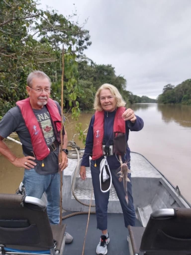 We had a little fishing trip one day to try to catch Piranhas and Terri caught a poisonous catfish instead. It had to be thrown back.