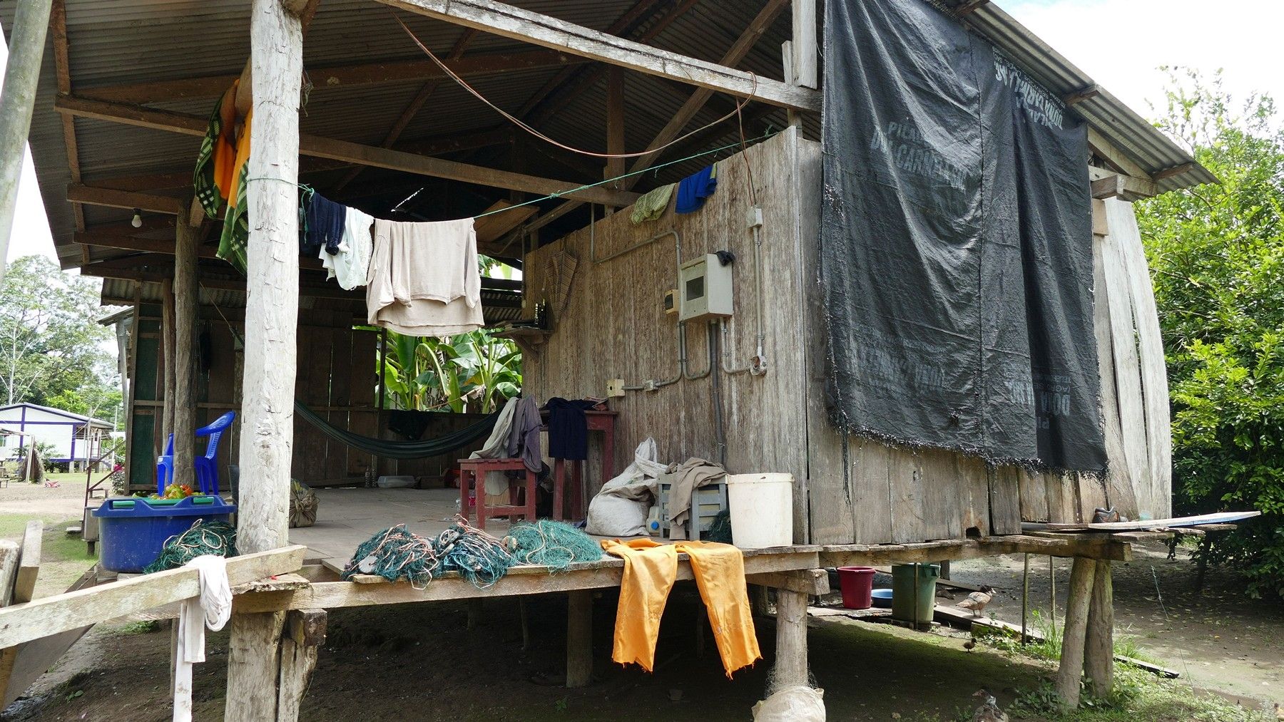 A village home. What's interesting is they have electricity.