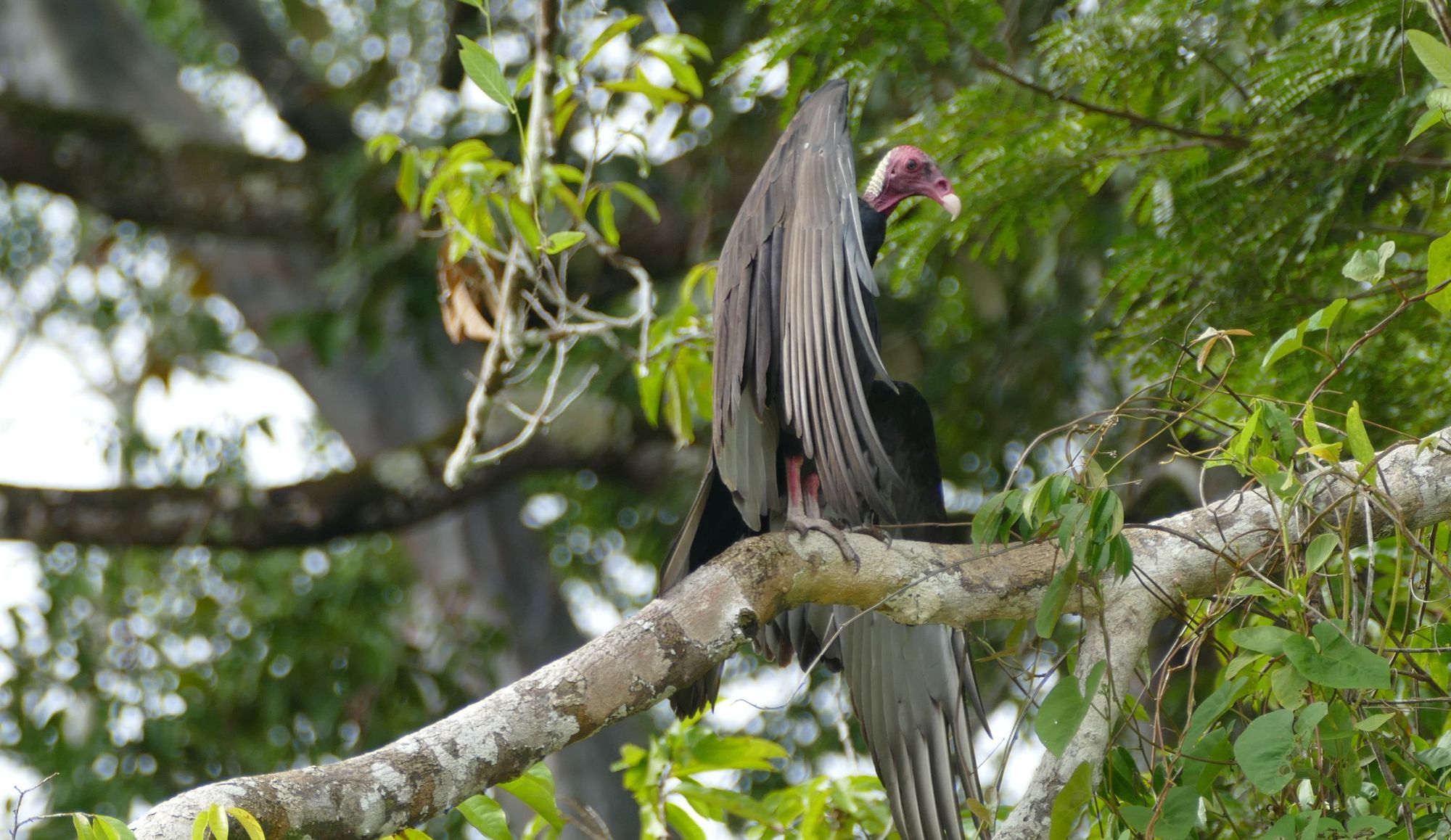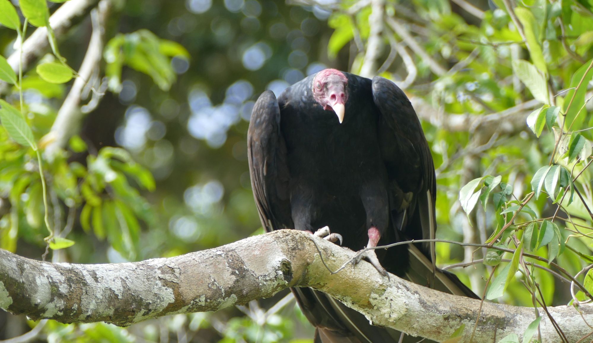 A turkey buzzard waiting for something to die. Buzzards are the cleanup crew of the jungle.