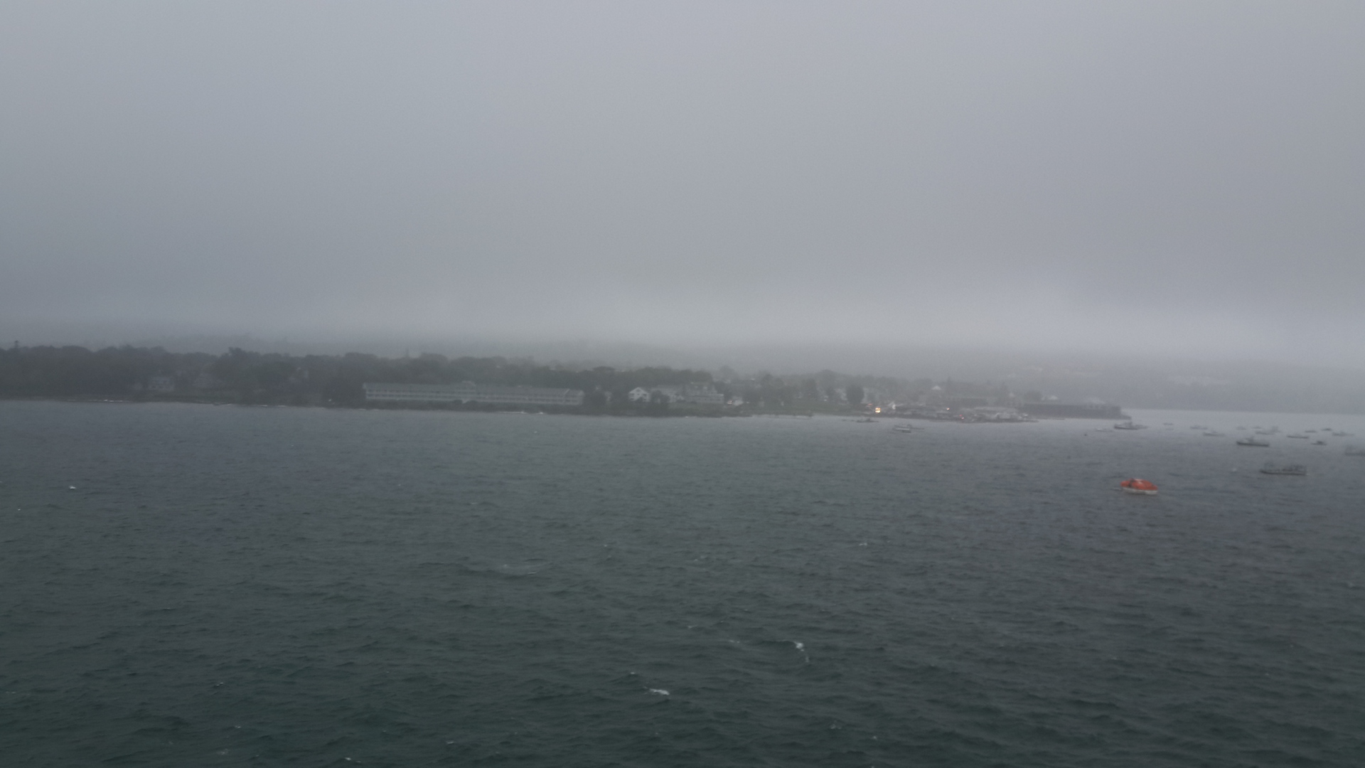 So we went back to the ship abut 1:00 PM but there were still many people on shore who had come ashore later than us. Just about the time we came back to the ship the wind and rain picked up substantially - to the point where the captain decided it was no longer safe for the tenders to bring the people back, a total of 93 of them, from the shore. They finally did get back about 4:00 PM when there was a brief lull in the wind but for a while it looked like they were going to have to send everyone who was still on shore to our final destination - Boston - via busses.