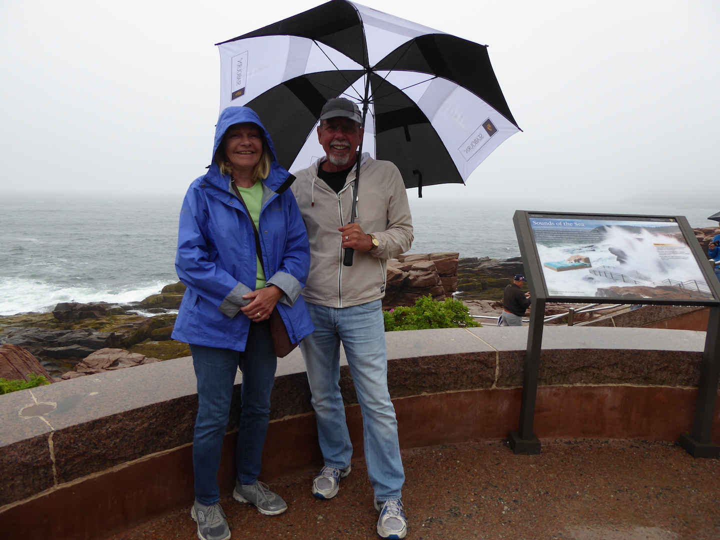 Luckily the ship had umbrellas for all of us. Terri had brought the rain coat she bought in Lillehammer earlier this year. I ended buying one in Bar Harbor later in the day, the white coat I had on was no match for the amount of rain coming down.