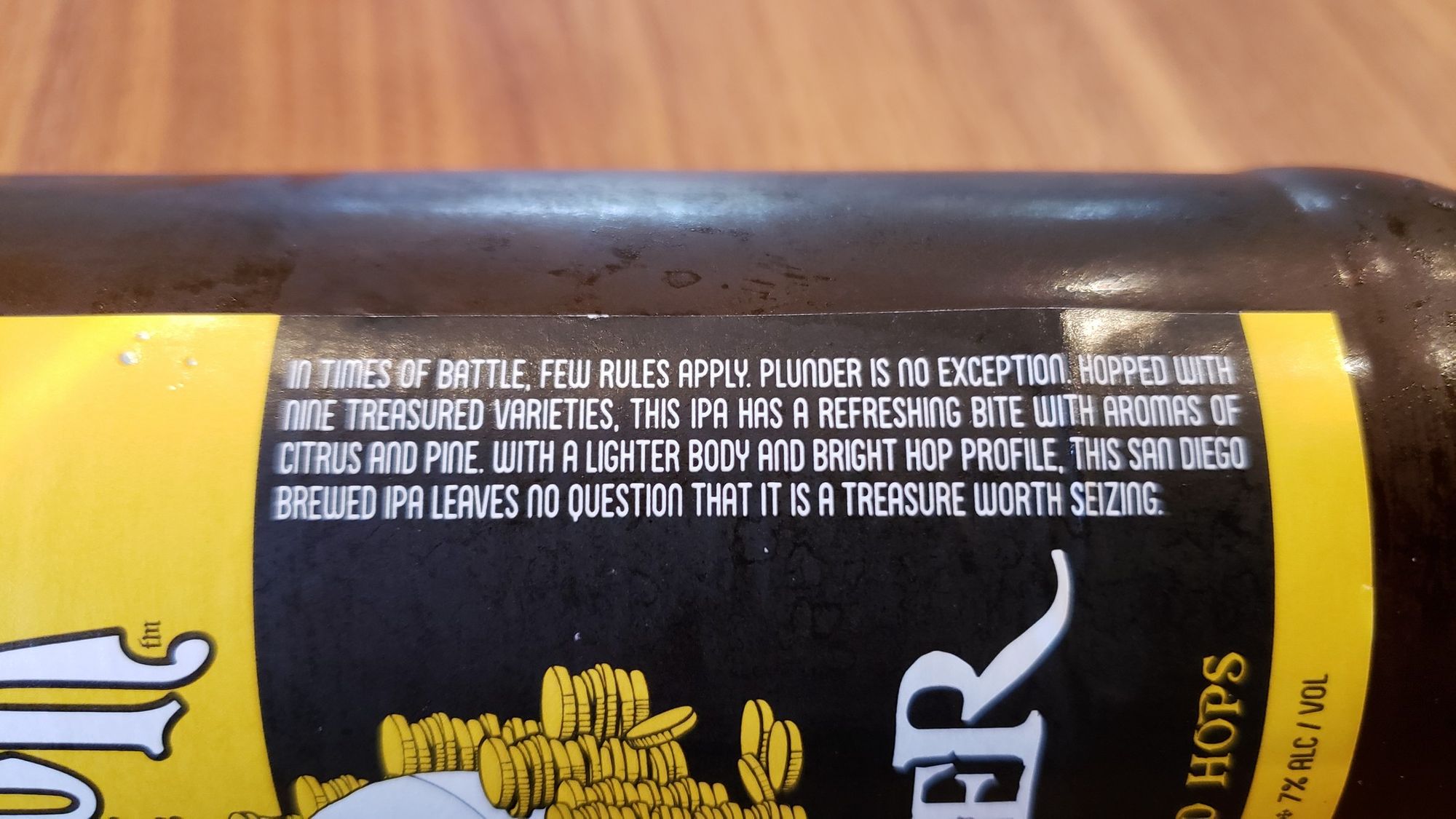 The next beer is Plunder IPA which is another American brewed beer - brewed in San Diego. It's a high alcohol beer just like beer # 1 - 7% so it should have some flavour.