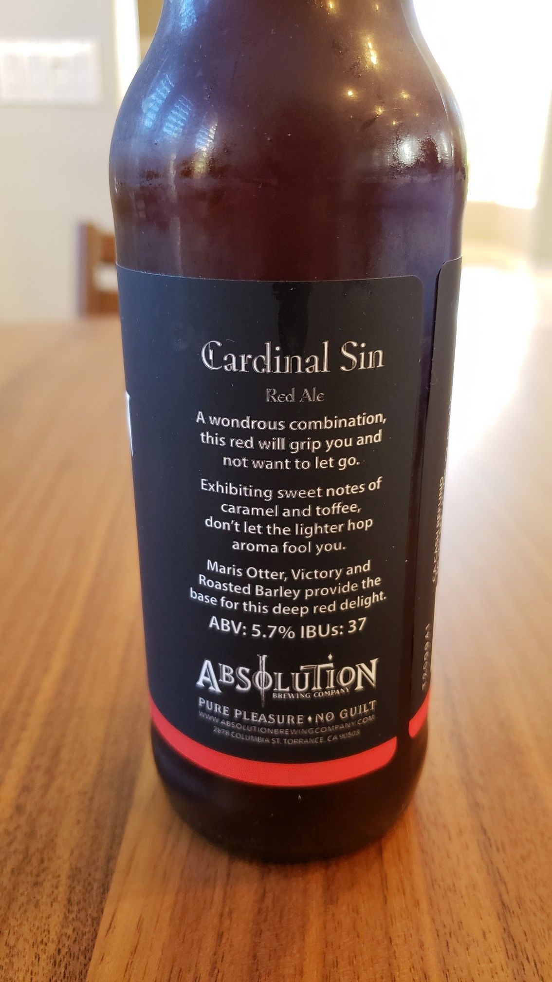 The next one is Absolution Cardinal Sin Red Ale.