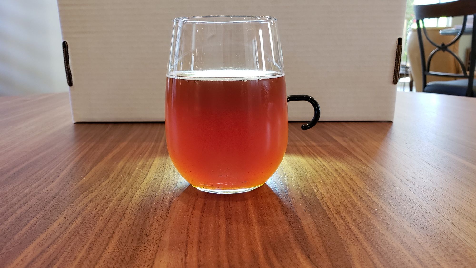 Just after I opened it and poured it into a glass and had a couple sips our doorbell rang. It was our neighbour from across the street and she was having a small emergency and asked if I'd help her.