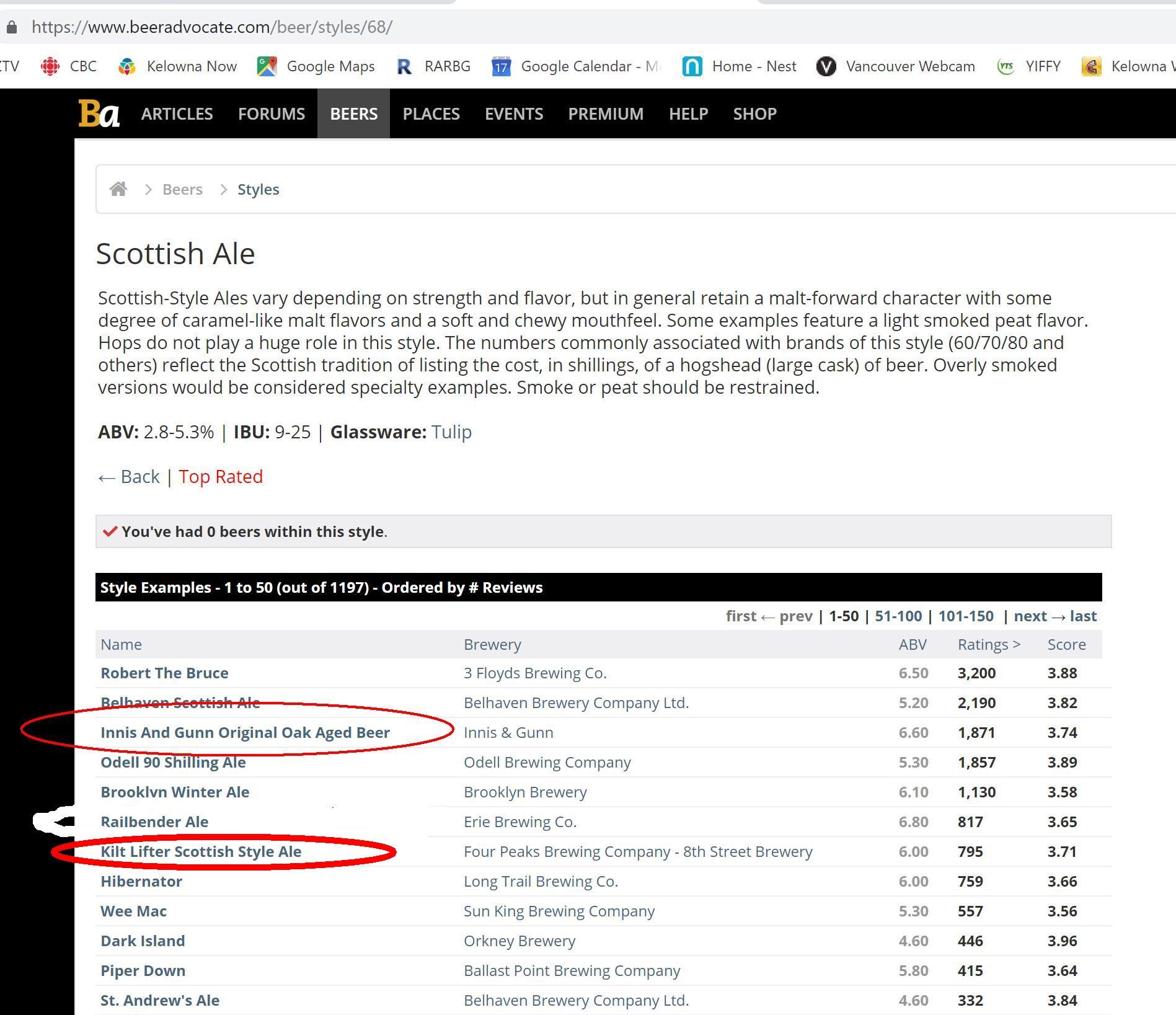Kilt Lifter, is also listed, but has a much lower rating...although it is higher than some in the list. I will have to look for the first two in the list to see how they compare to Innis and Gunn.
