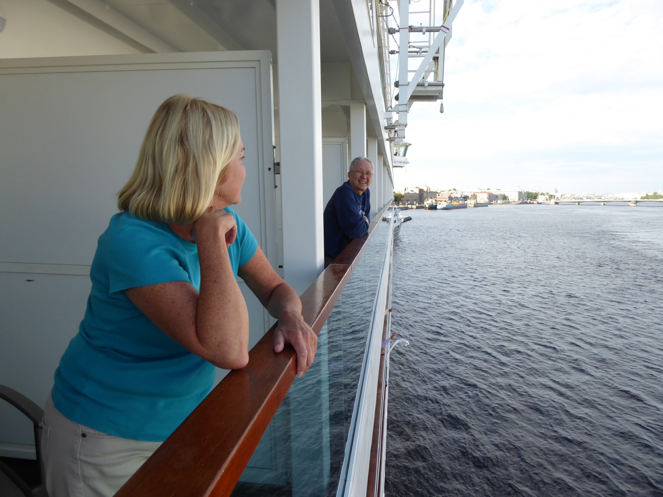 We have a balcony this time. Didn't use it much as we were always on the go during the day and the evenings can be cool in the Baltic Sea. Terri here speaking to our neighbour Bernard.