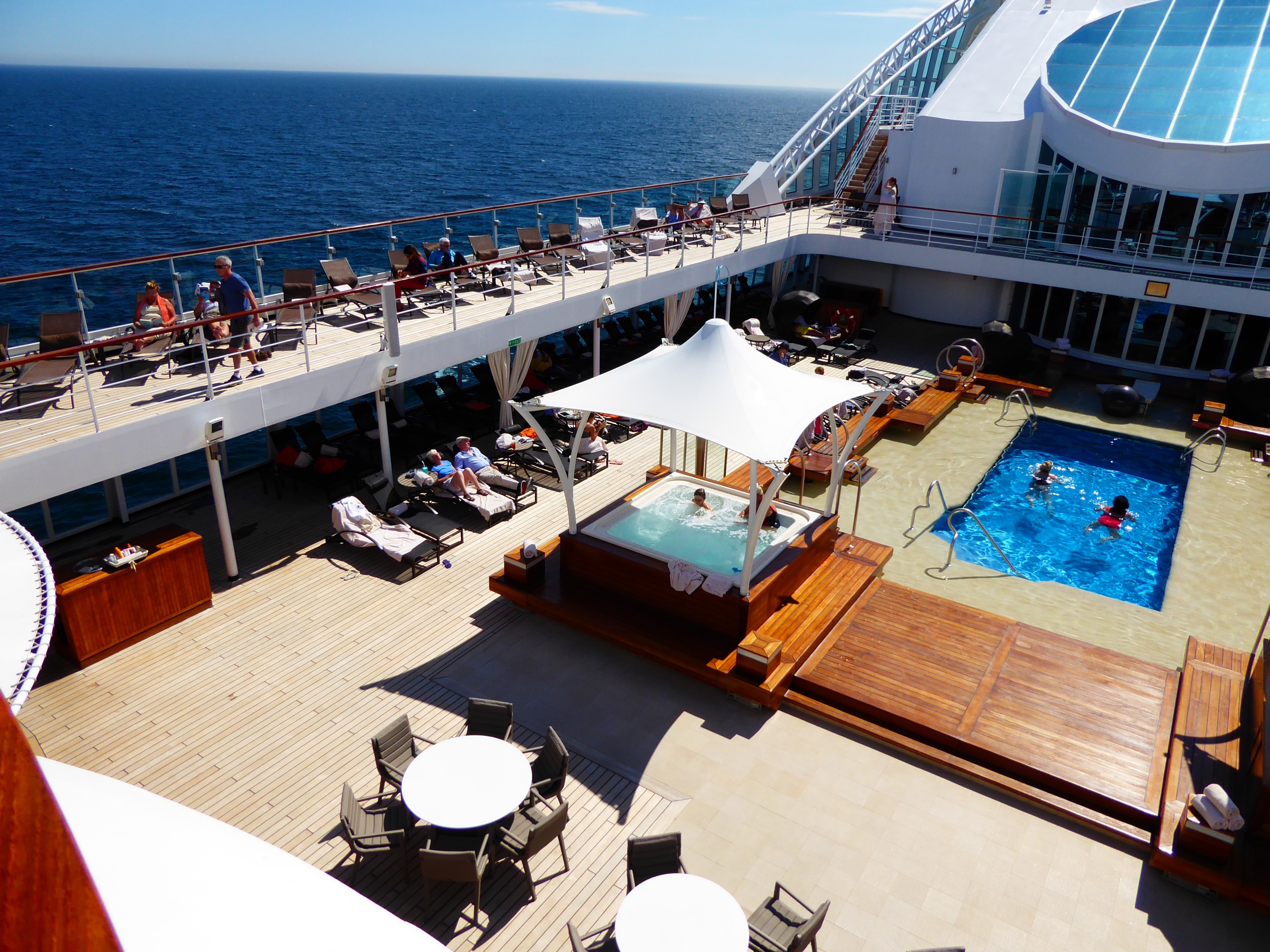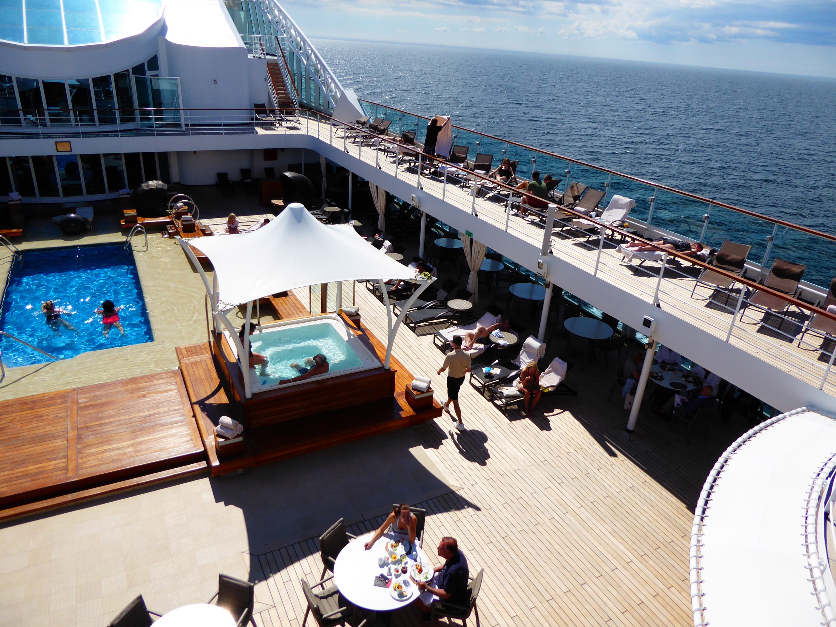 A couple shots of the pool deck. This was our very first day on the ship and it was what they call an "at sea" day which means you are sailing all day and have no port visit. We lucked out as it was a beautiful warm summer day. Wee were told that the previous two weeks had been cold and overcast. We got seven great days though.