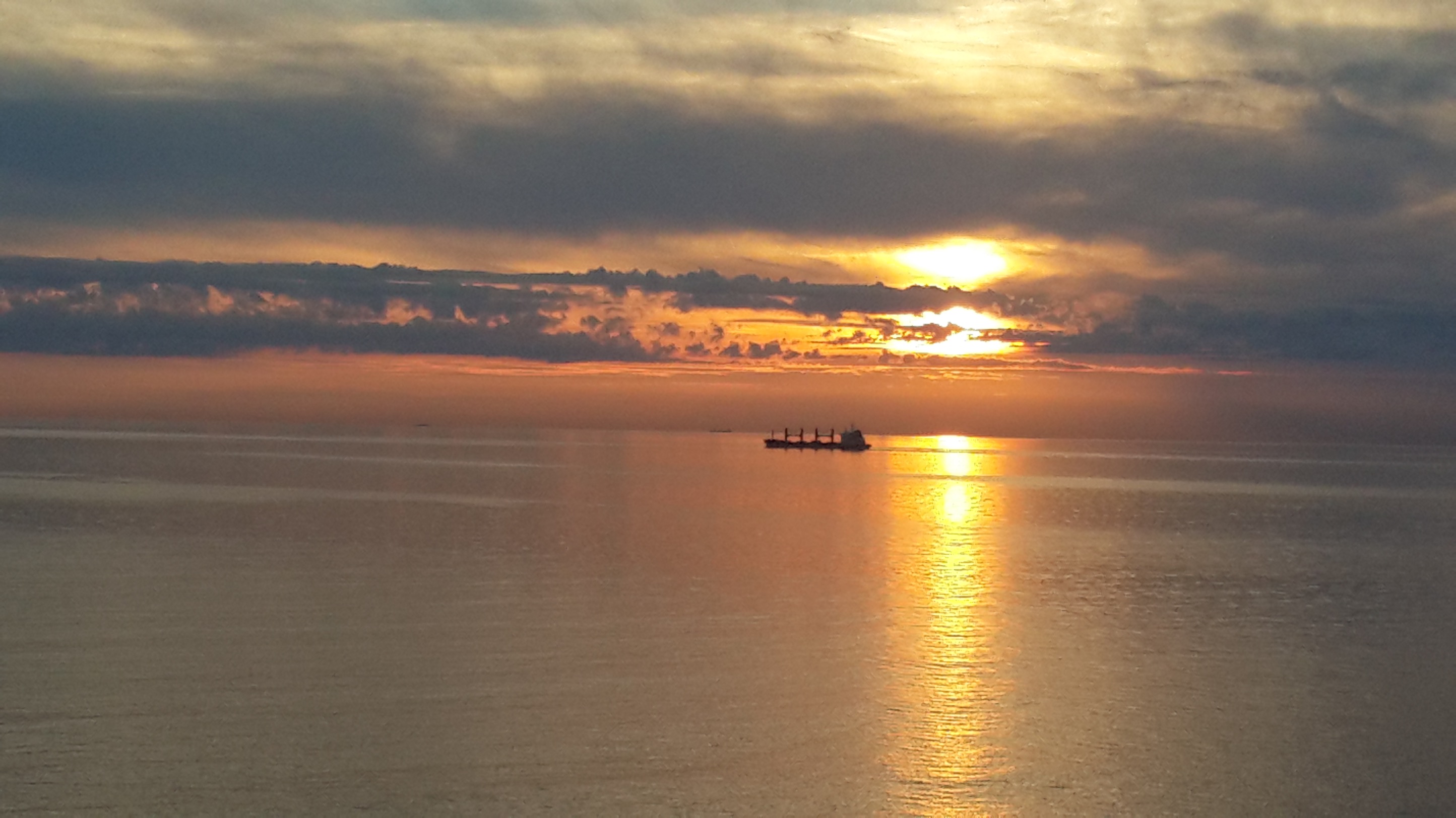 Sunset in the Baltic Sea. At this time of year it doesn't get completely dark. You have to make sure to close your curtains all the way because at 4:00 AM it's daylight time again.