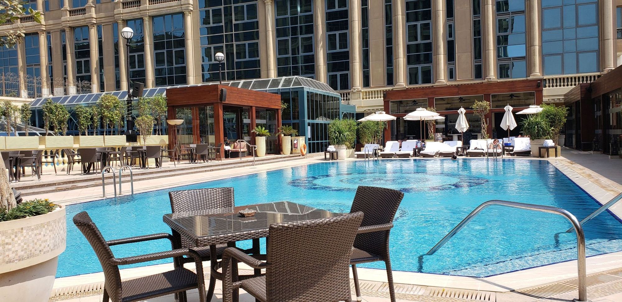 The hotel we were at was a Fairmont (I think) and quite nice. The pool area below.