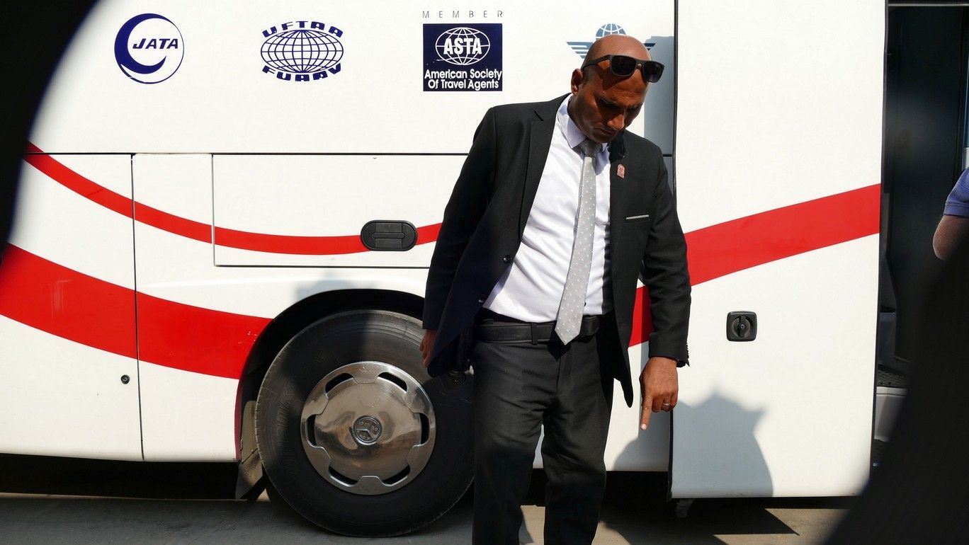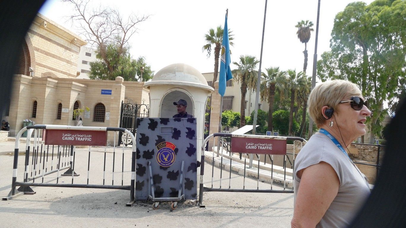 In Egypt everywhere we went we had a guy like this with us on the bus and then with us as we walked around. What you can't see is he has a machine pistol under his suit coat. We were told he is a policeman. We felt safe with him on the bus with us.