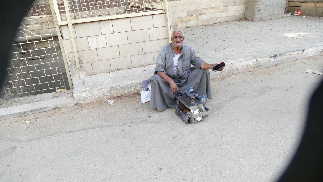 This old guy was shining shoes for a living.