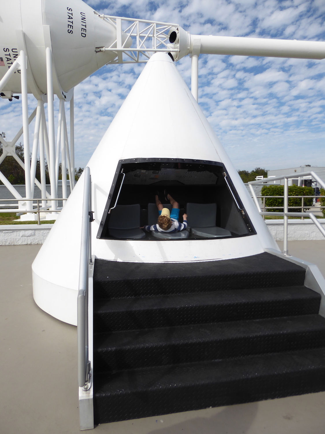 And this is a mock up of the module where the astronauts rode on top of the rocket. I wanted to go in there but the little bugger was not budging.
