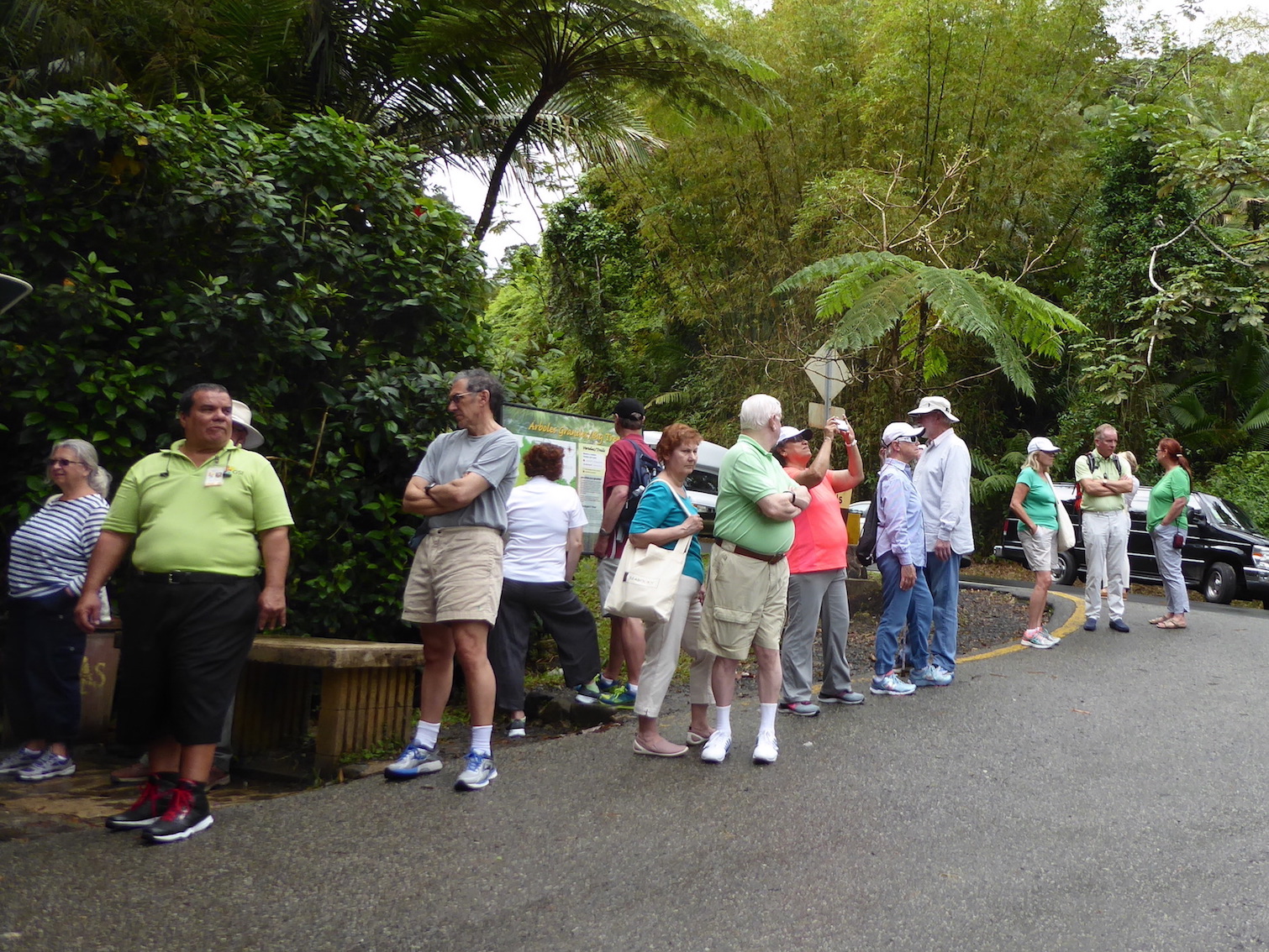The excursion in Puerto Rico was a walk through a rain forest. Sounds great right? But in order to get to the rain forest you need to go on a 1-1/2 hour bus ride. Then you have about one hour at the rain forest which turns into about 45 minutes when you consider some of these old buggers have to visit the bathroom at every available opportunity and the rest of us have to wait for them. Then you have another 1-1/2 hour bus ride back to the ship.