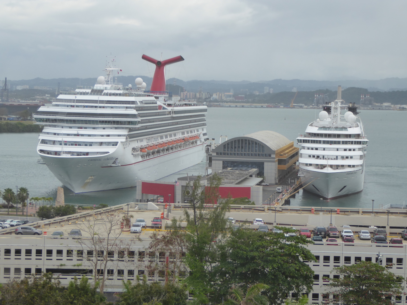 Our ship (on the right) next to a huge ocean liner the Carnival Conquest. It was an entirely different group of tourists leaving that ship this morning.