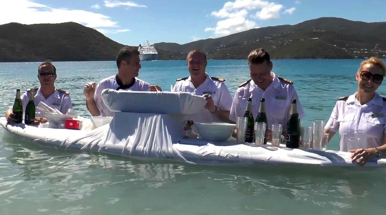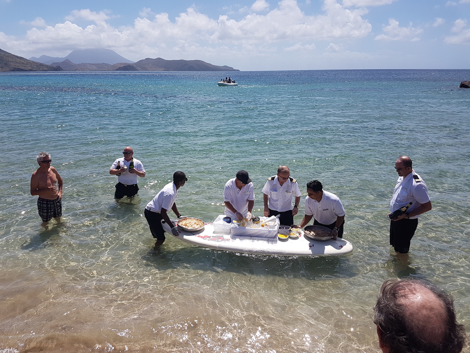 One thing that Seabourn does on these Caribbean cruises is what they call "Champagne and Caviar in the Surf". They take everyone to a beach for a day of eating and drinking and soaking up sun. All the liquor, food, plates, cups, glasses, etc needs to go ashore too.