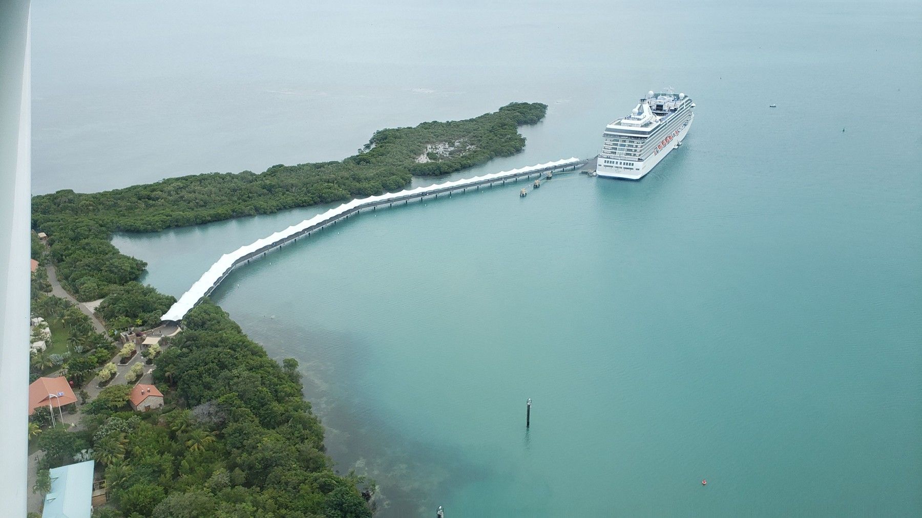 On our way to Punta Gorda we have to stop twice to let off passengers. Once in Placencia, where our next stop will be, and then in Dangriga. After taking off from Placencia we fly over a private island belonging to Norwegian Cruise Lines. Each day they have a different ship here where they off load passengers and, I imagine, charge them a small fortune to enjoy the activities.