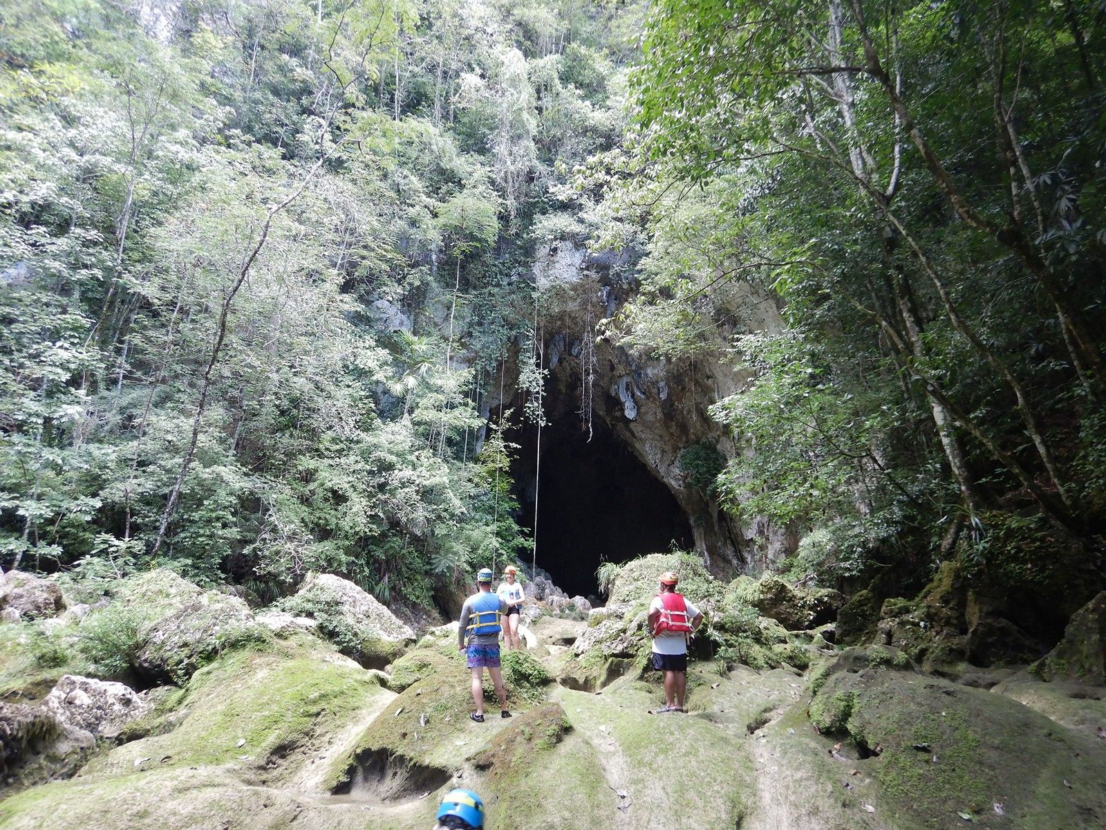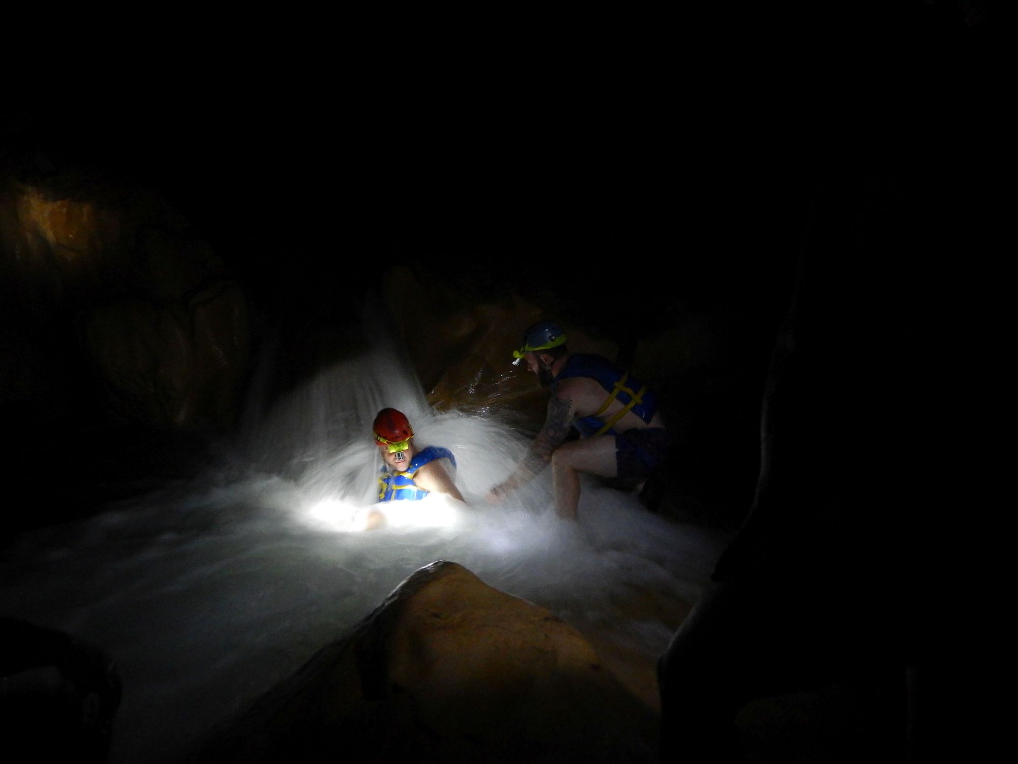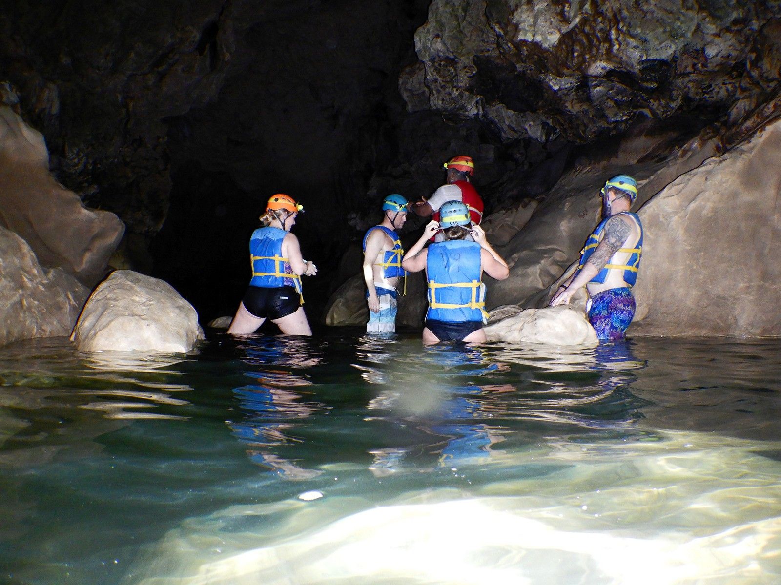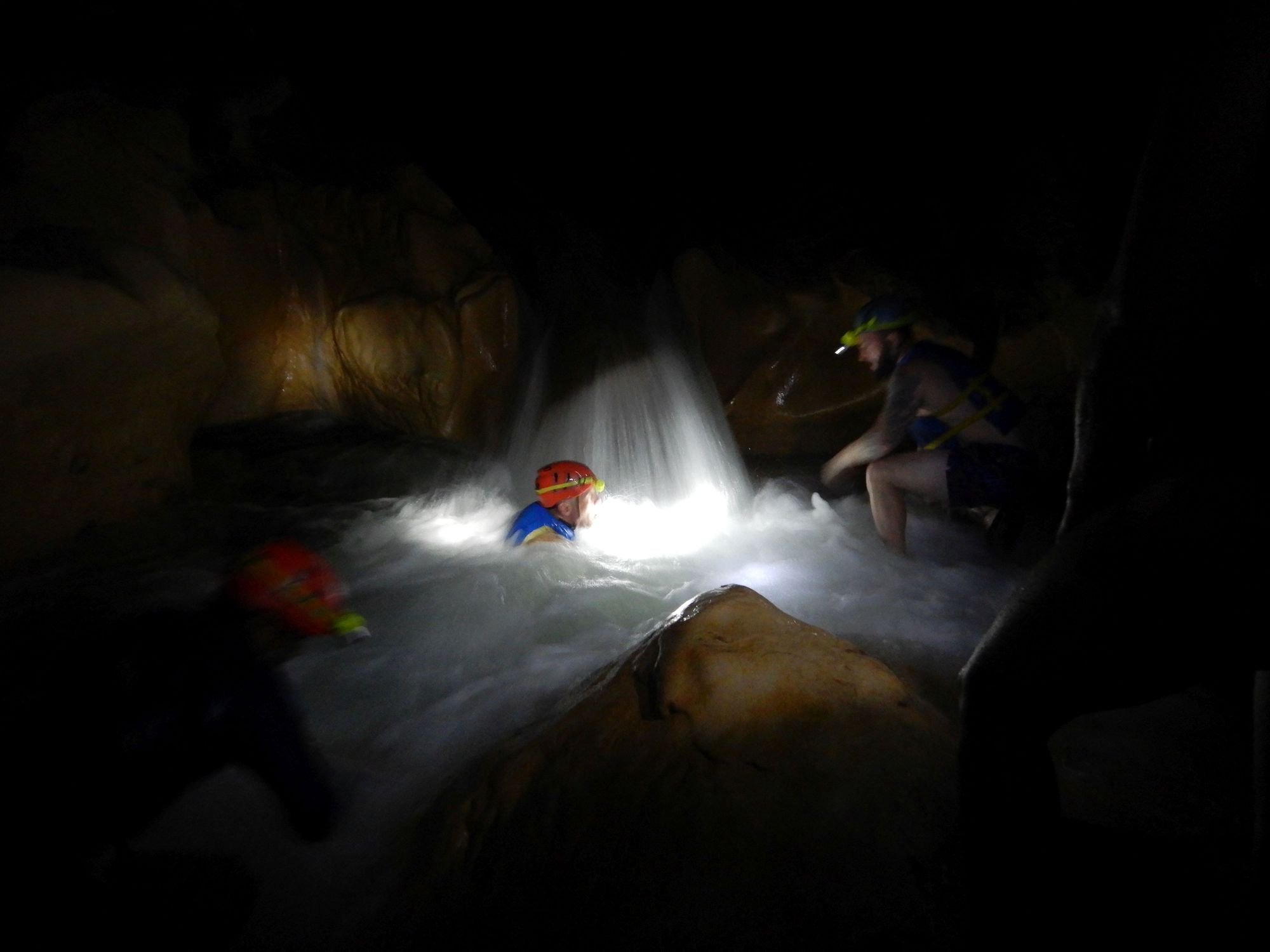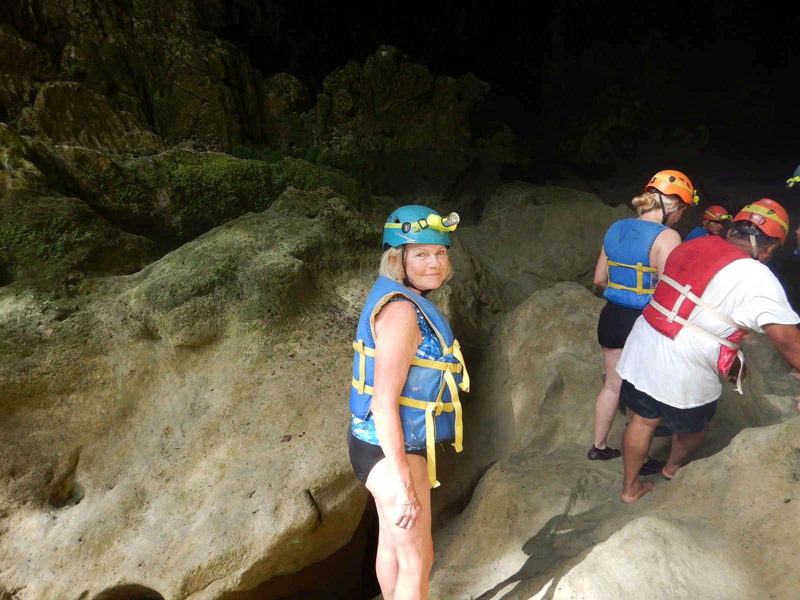 The cave was pitch black so we had to wear a helmet with a lamp.