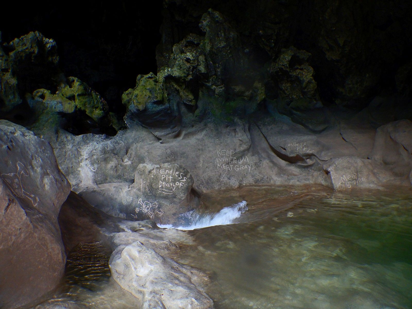 And below is a very small hole where the cave water drains out. It exits somewhere in the valley below. Apparently a young kid disappeared down this hole a few years ago never to be seen again.