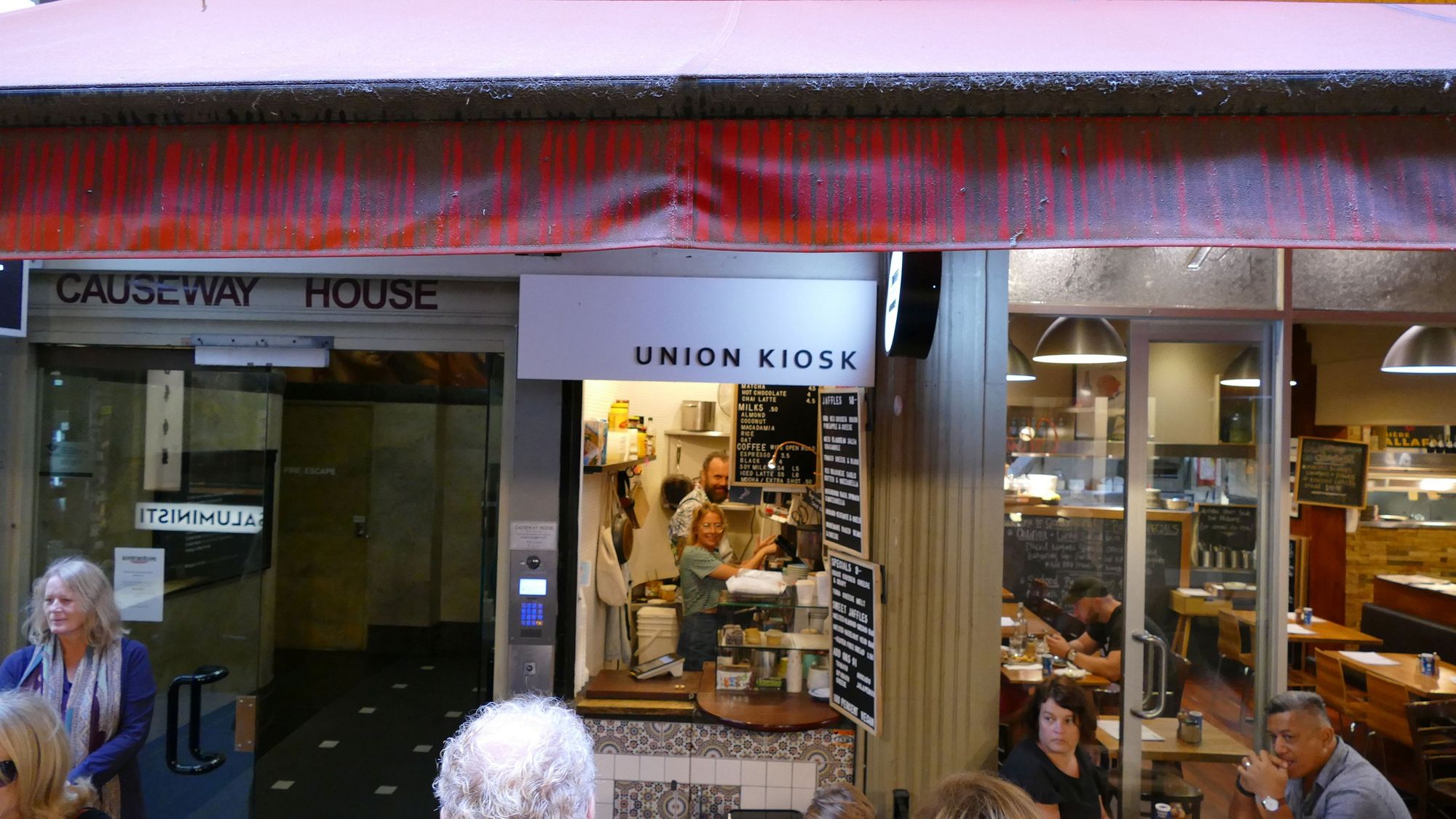 Property is very valuable in these little alleyways. Our guide told us the Union Kiosk coffee shop below, which is about 6 feet wide and 10 feet deep, was purchased by the two people shown for around $300,000. You have to sell a lot of coffee to break even.