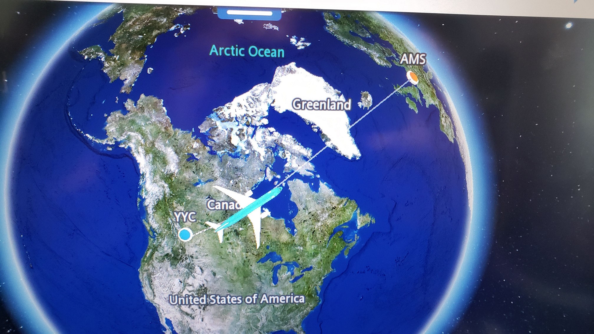 The route from Calgary to Amsterdam. I was hoping to see Iceland but was on the wrong side of the plane.