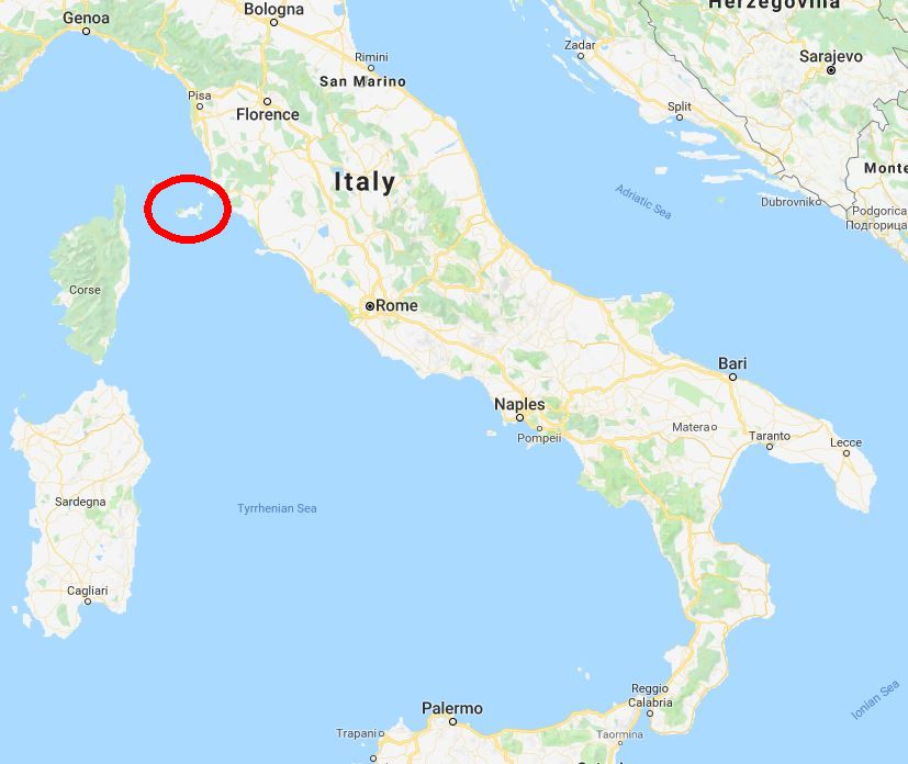 Elba is a small island about 10 km off the coast of Italy.