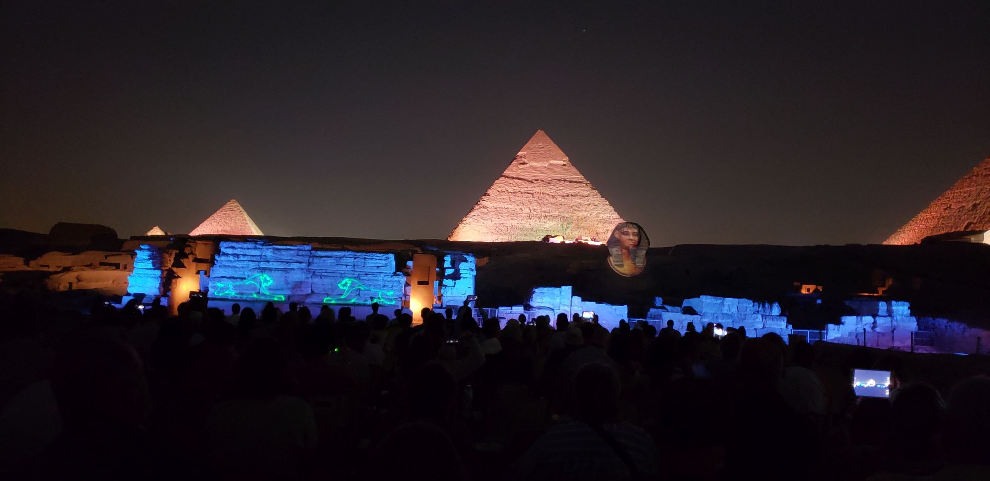 In the evening we were taken to a light show that was kind of hokey. They lit up the pyramids and projected a face onto the sphinx and Omar Sharif narrated a story.