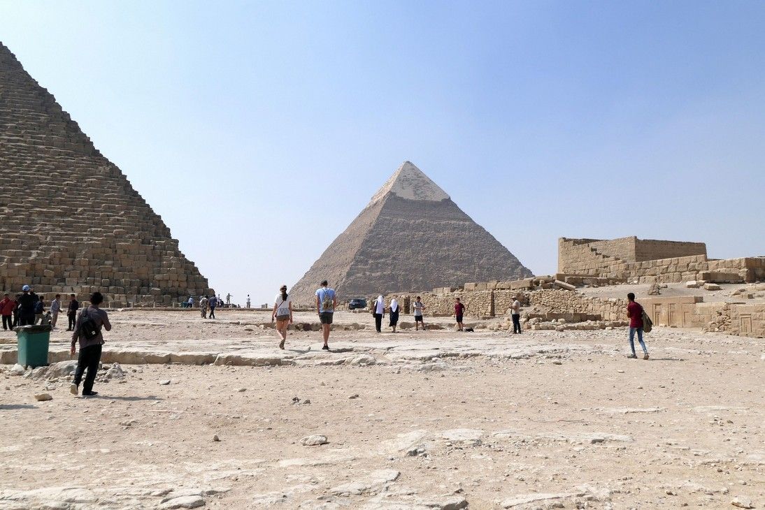 The pyramid with the snow on top is the Pyramid of Khafre. He was the son of Khufu, the pharaoh who built the Great Pyramid.
