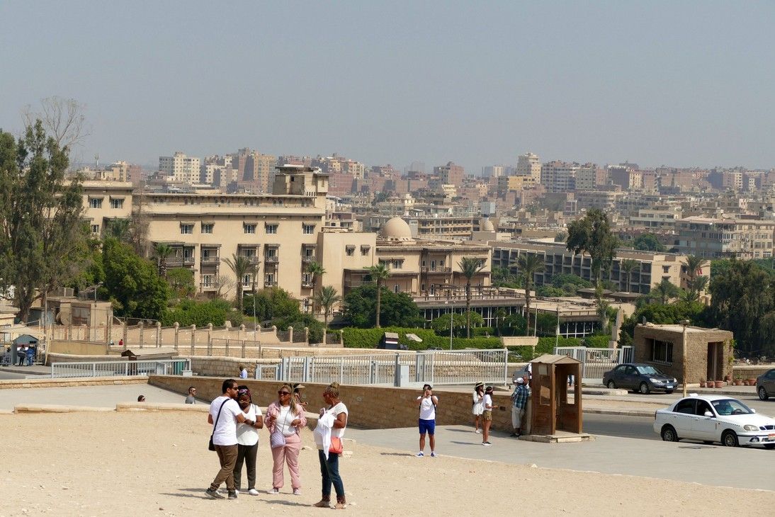 When I used to think about the pyramids and the sphinx I always though they were waaaayyy out of town in the desert and they probably were when they were built but not any more.