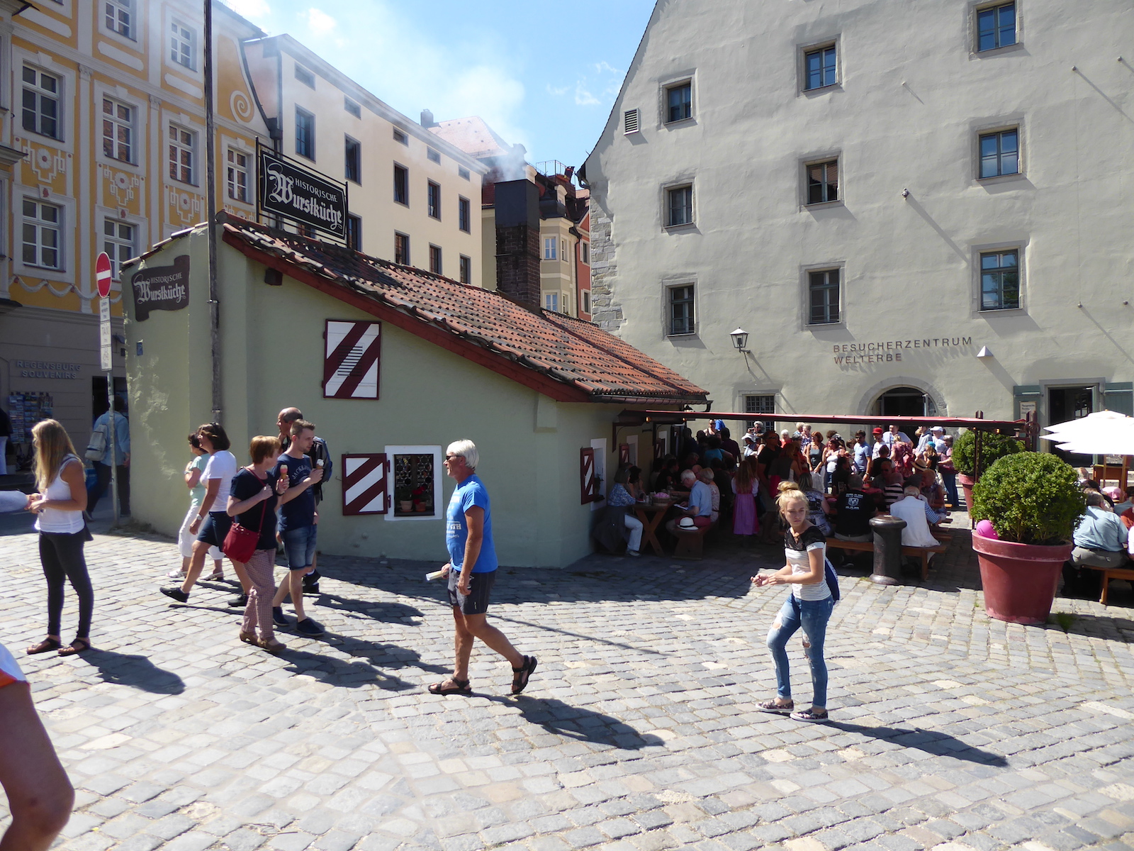 This is the Regensburg Sausage Kitchen. According to this Wiki page it's the oldest operating restaurant in the world. It has been here since 1145.